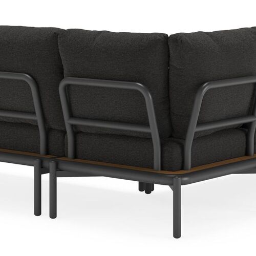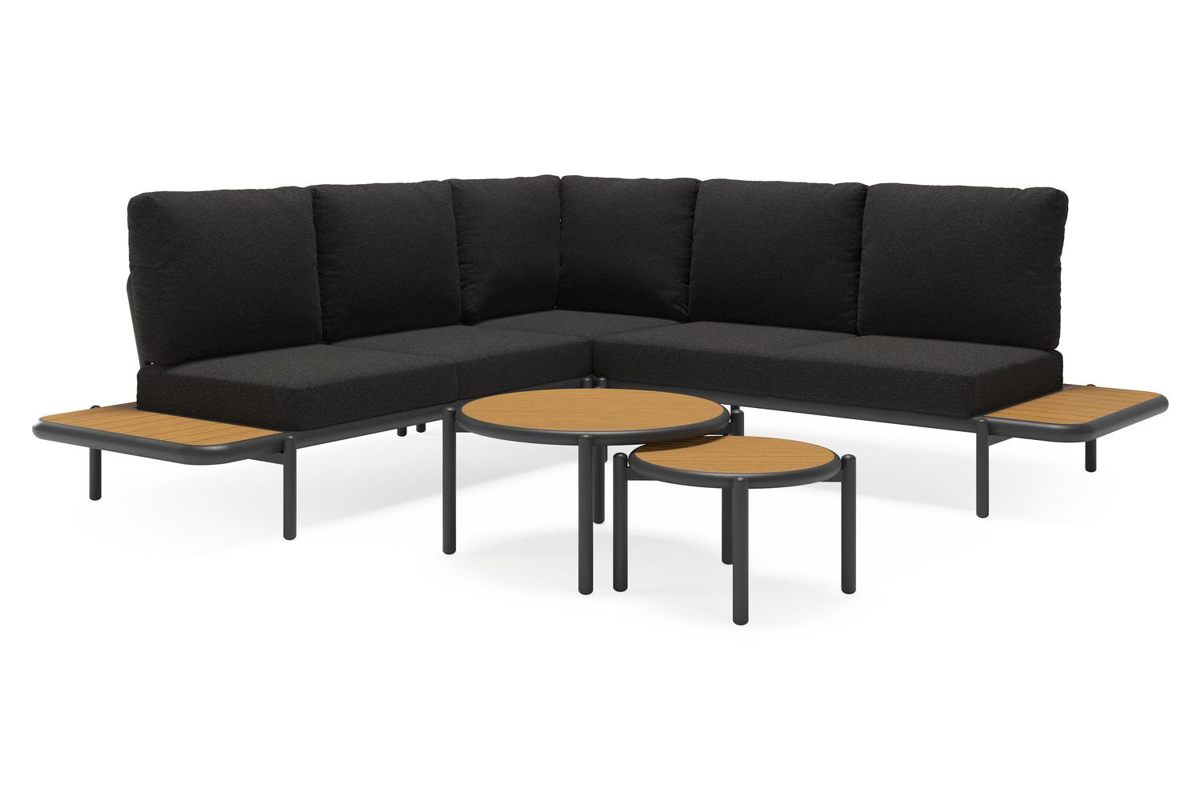 Ervaar ultiem comfort en moderne elegantie met deze stijlvolle Pulo lounge. Het frame van gepoedercoat aluminium met afgeronde vormen en slanke, ronde poten geeft de lounge een luchtige en verfijnde uitstraling. De ingebouwde zijtafels, vervaardigd uit polywood, voegen een warme, natuurlijke toets toe en bieden een handige plek om je drankje binnen handbereik te houden. De loungekussens zijn inbegrepen en gemaakt uit Weather+ Softtouch. Deze kussens hebben een olefin stof waardoor ze zacht aanvoelen en vuilafstotend zijn. Weather+ Softtouch kussens zijn beperkt waterafstotend en hebben één laag standaard schuimkussen in een waterbestendige binnenhoes. In de winter of bij langdurige regen bewaar je de kussens best binnen.