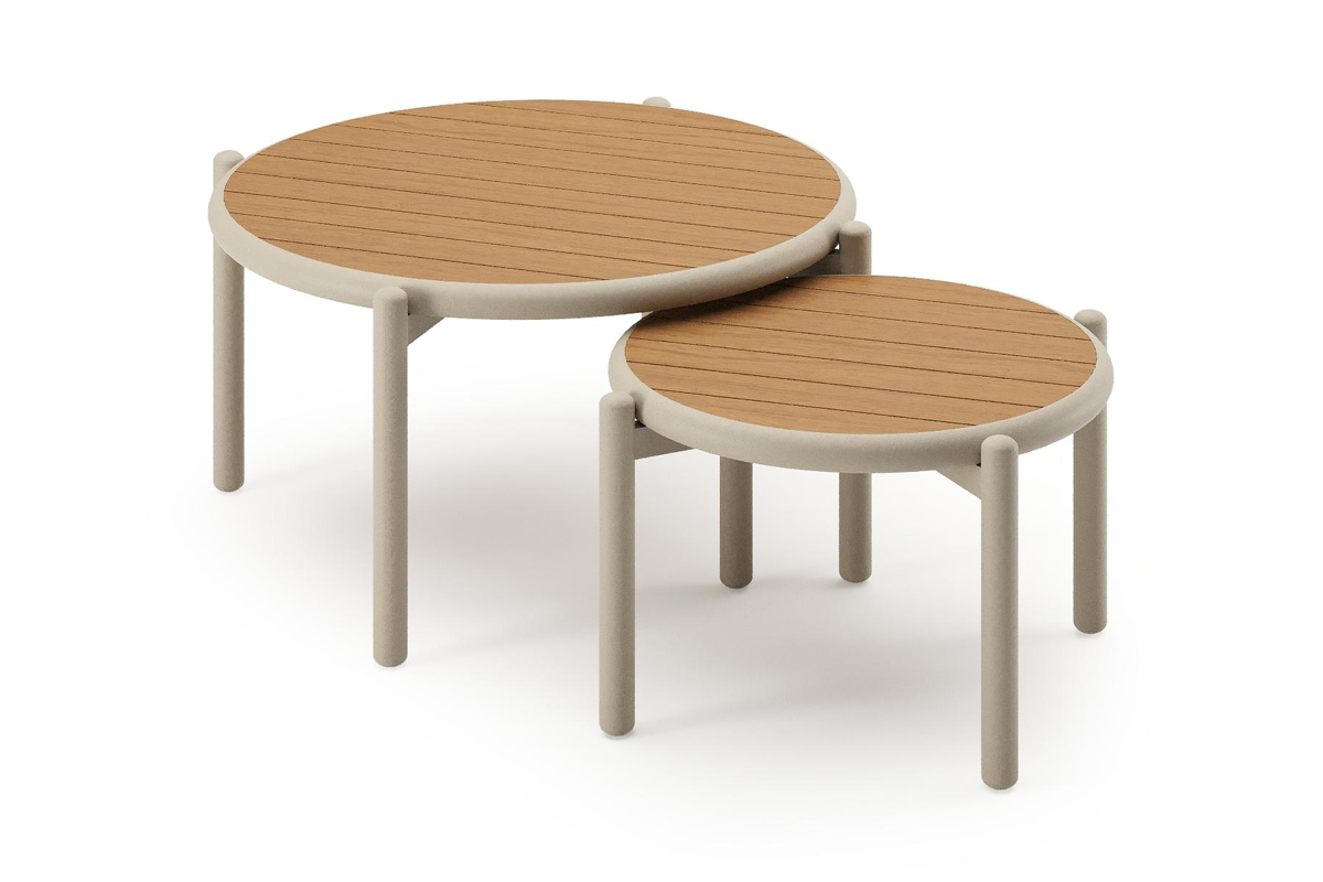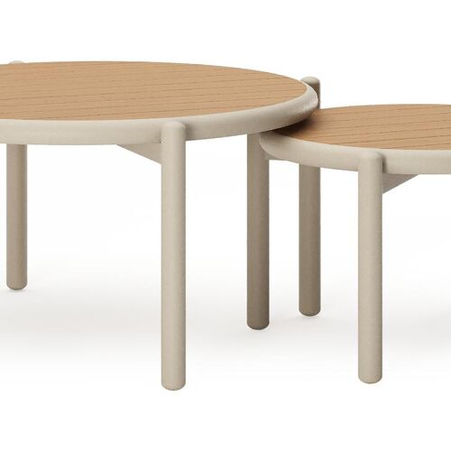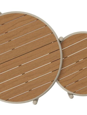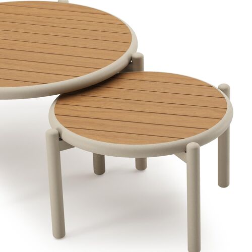 Pulo loungetafels in beige aluminium en polywood - Dia. 70 - 50 x H. 37.5 - 32.5 cm | Exterioo