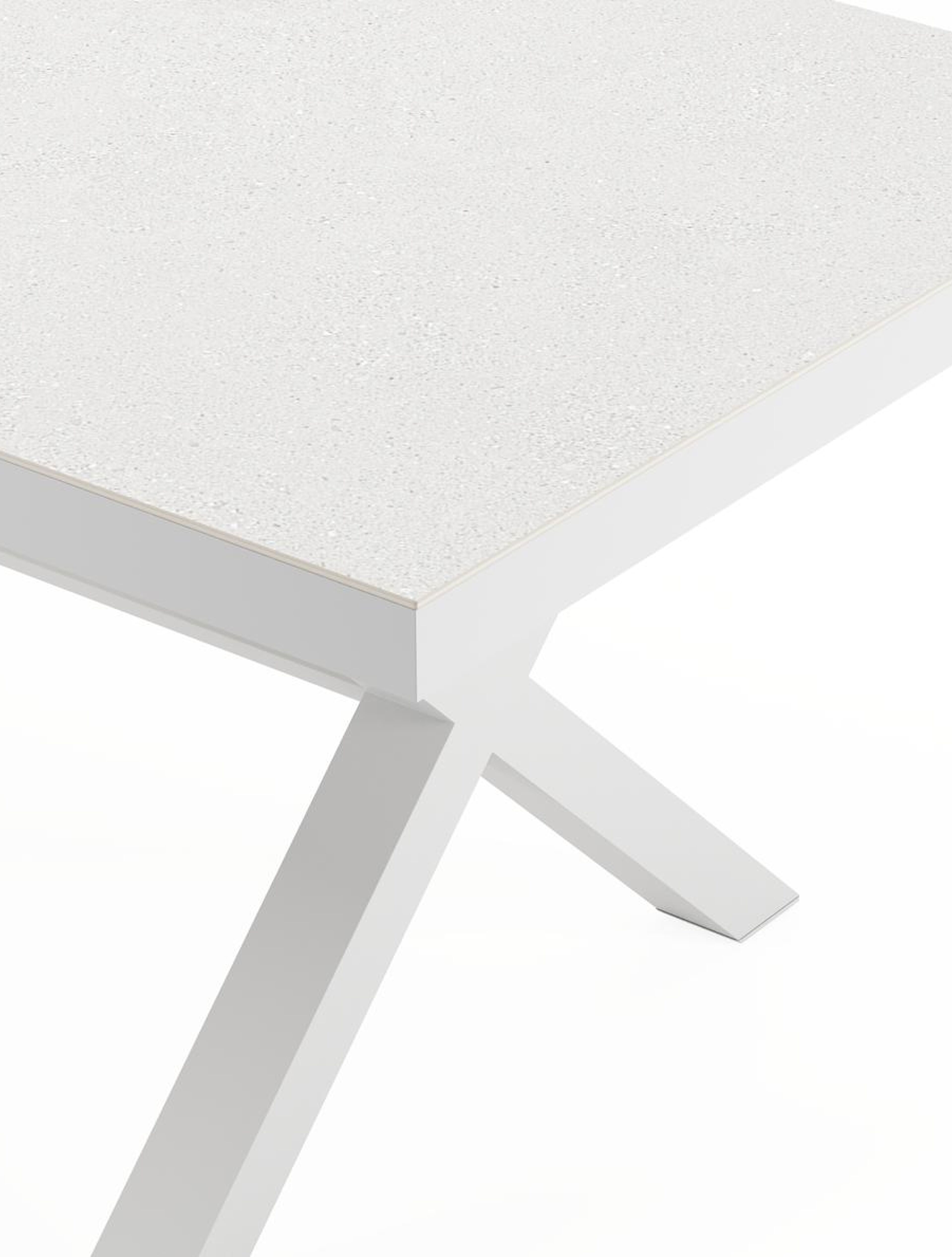 Het frame van de tafel is gemaakt uit roestvrij aluminium, een sterk, maar toch licht materiaal dat makkelijk verplaatsbaar is. Het oppervlak is glad afgewerkt waardoor het geen vuil aantrekt en onderhoudsvriendelijk is. De poedercoating zorgt voor de UV- en weerbestendigheid van je meubel.
