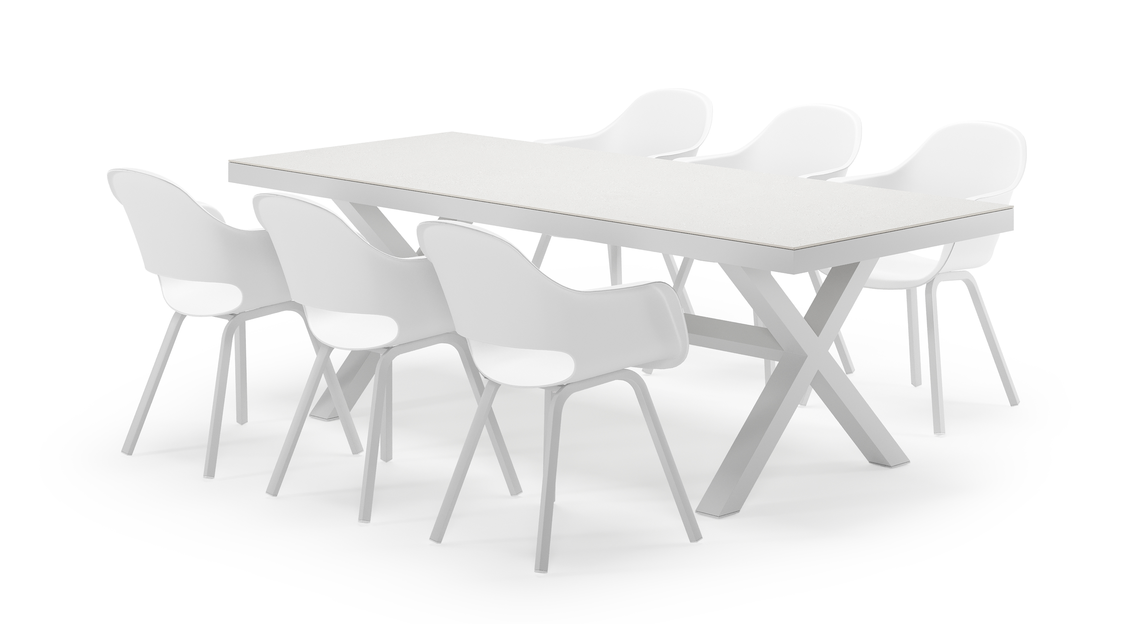Het frame van de tafel is gemaakt uit roestvrij aluminium, een sterk, maar toch licht materiaal dat makkelijk verplaatsbaar is. Het oppervlak is glad afgewerkt waardoor het geen vuil aantrekt en onderhoudsvriendelijk is. De poedercoating zorgt voor de UV- en weerbestendigheid van je meubel.