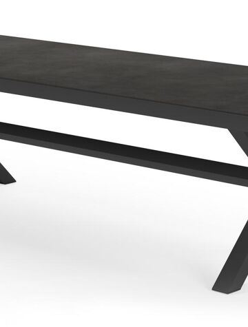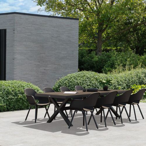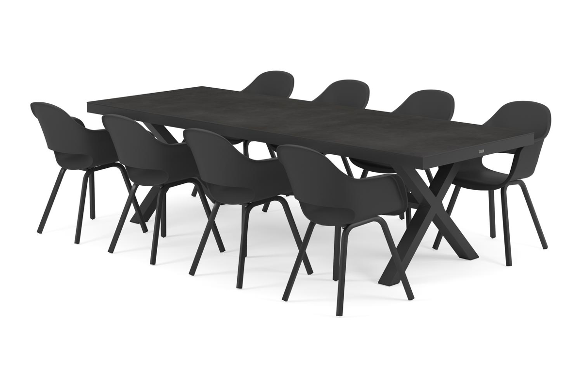 Reza tuinset in zwart aluminium en zwart volkeramiek tafelblad met 8 Artena tuinstoelen | Exterioo