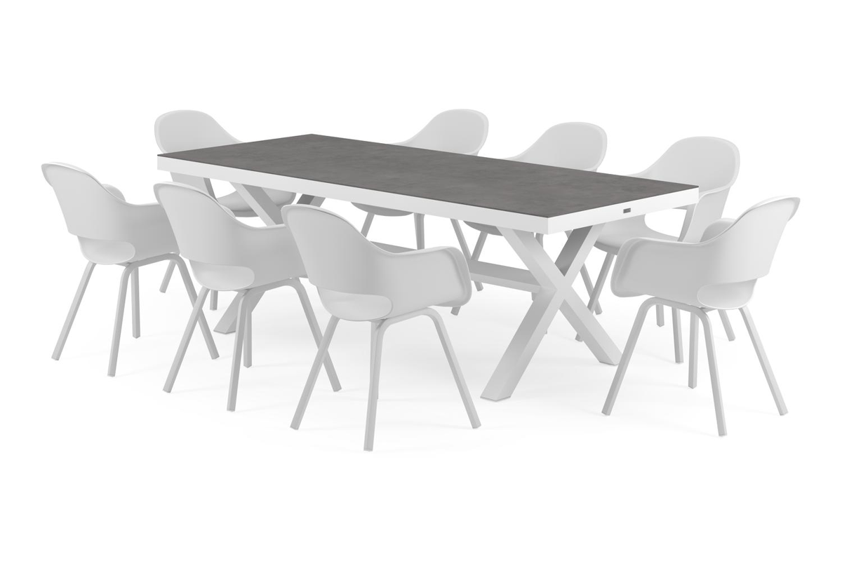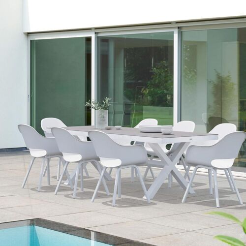 Het frame van de tafel is gemaakt uit roestvrij aluminium, een sterk, maar toch licht materiaal dat makkelijk verplaatsbaar is. Het oppervlak is glad afgewerkt waardoor het geen vuil aantrekt en onderhoudsvriendelijk is. De poedercoating zorgt voor de UV- en weerbestendigheid van je meubel.