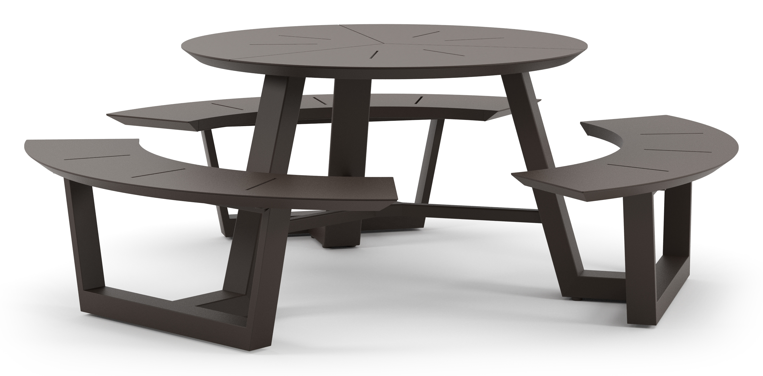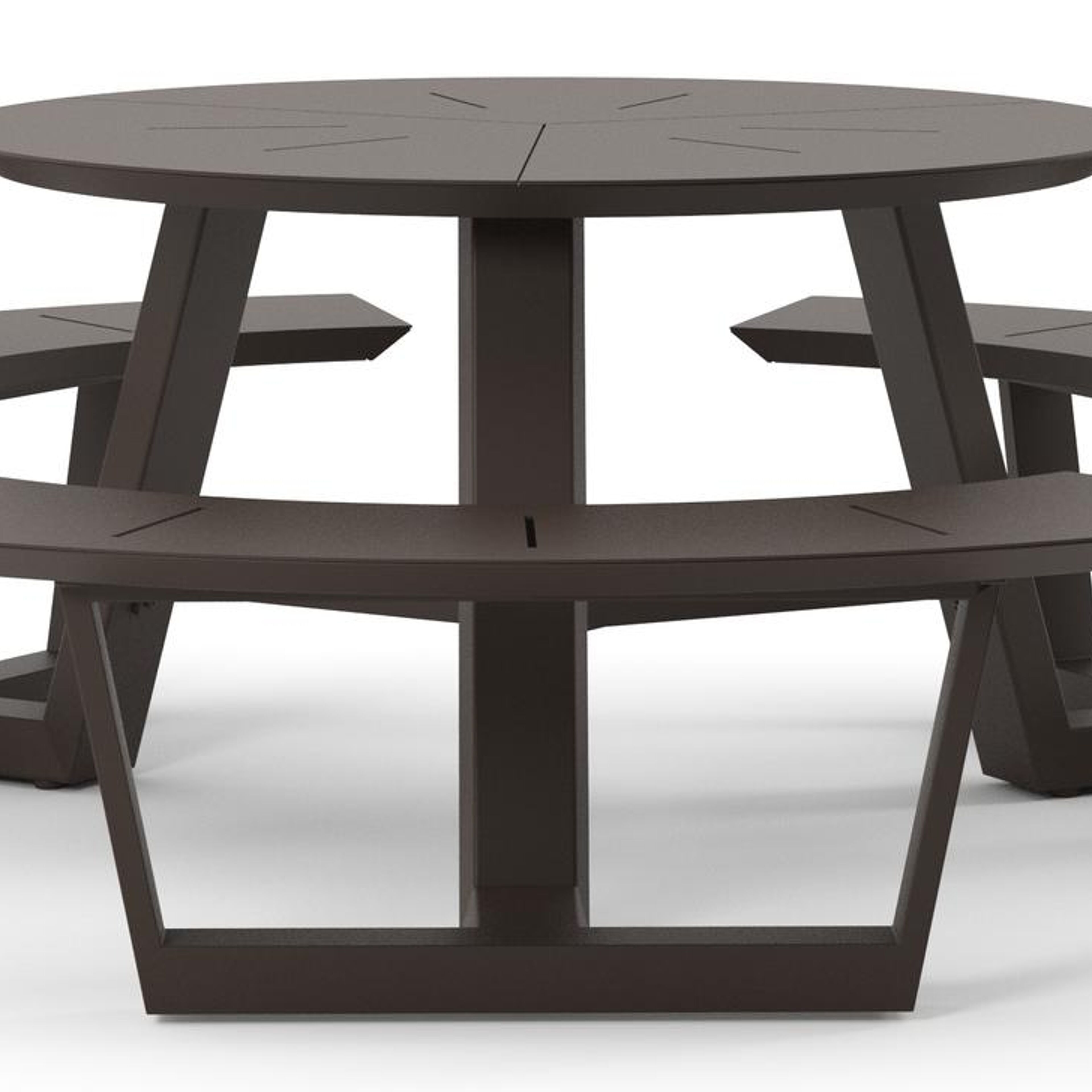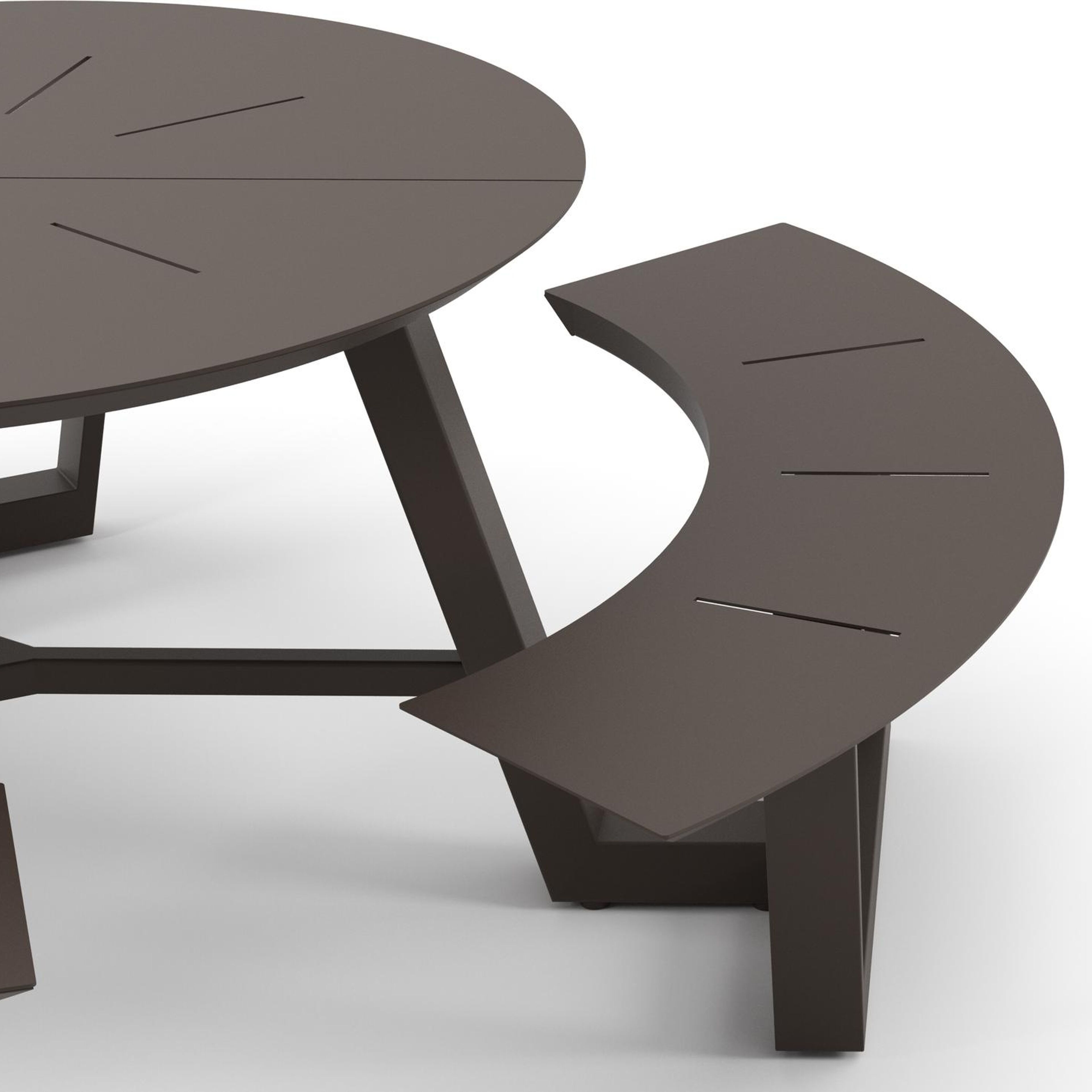 Rondino picknicktafel in donkerbruin aluminium - Dia. 207 x H. 71.5 cm | Exterioo tuinmeubelen
