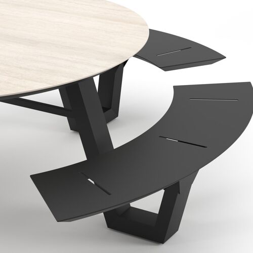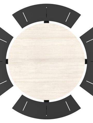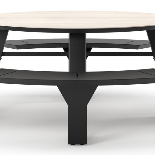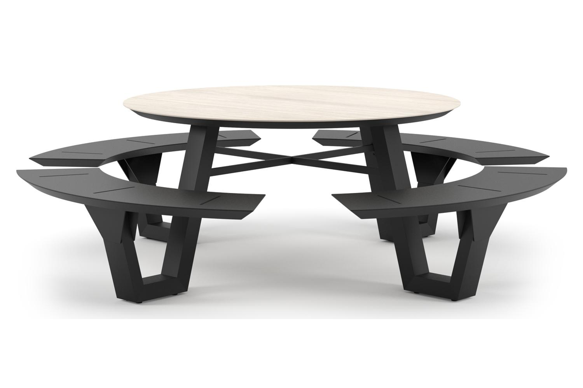 Rondino picknicktafel rond in zwart aluminium en volkeramiek Travertino Bianco - Dia. 236 x H 71.5 cm | Exterioo