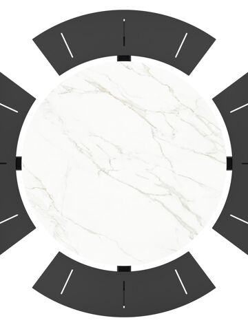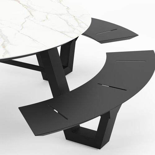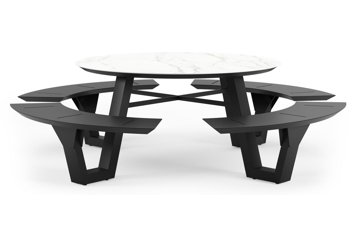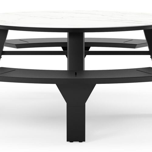 Rondino picknicktafel rond in zwart aluminium en volkeramiek Calacatta - Dia. 236 x H 71.5 cm | Exterioo