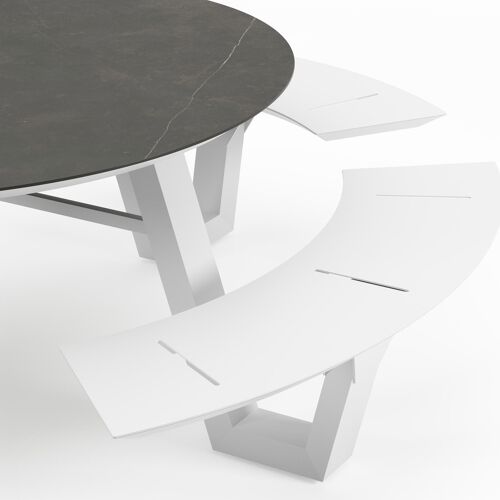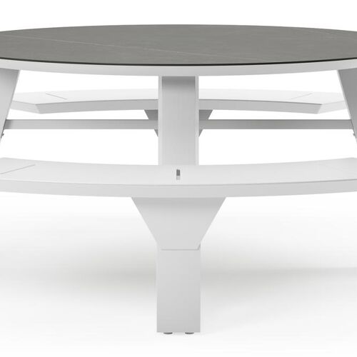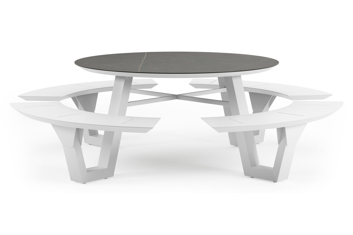 Rondino picknicktafel rond in wit aluminium en volkeramiek Calatorao - Dia. 236 x H 71.5 cm | Exterioo