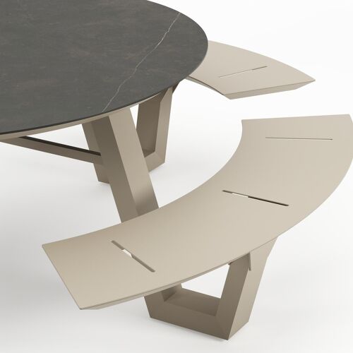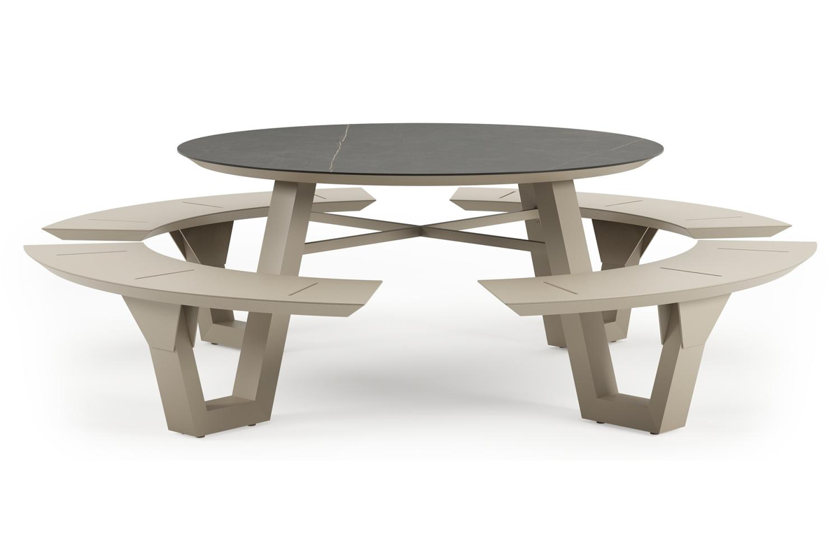 Rondino picknicktafel rond in beige aluminium en volkeramiek Calatorao - Dia. 148 x H 71.5 cm | Exterioo