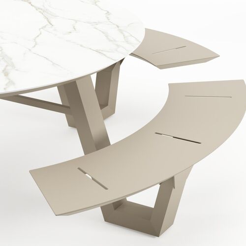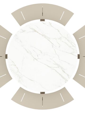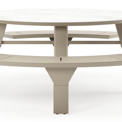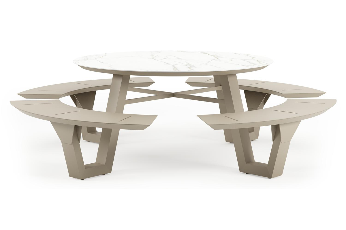 Rondino picknicktafel rond in beige aluminium en volkeramiek Calacatta - Dia. 148 x H 71.5 cm | Exterioo