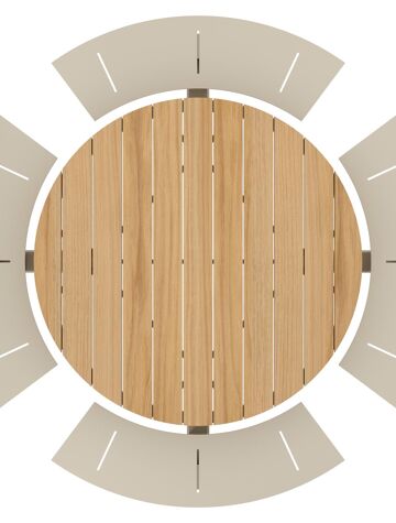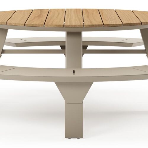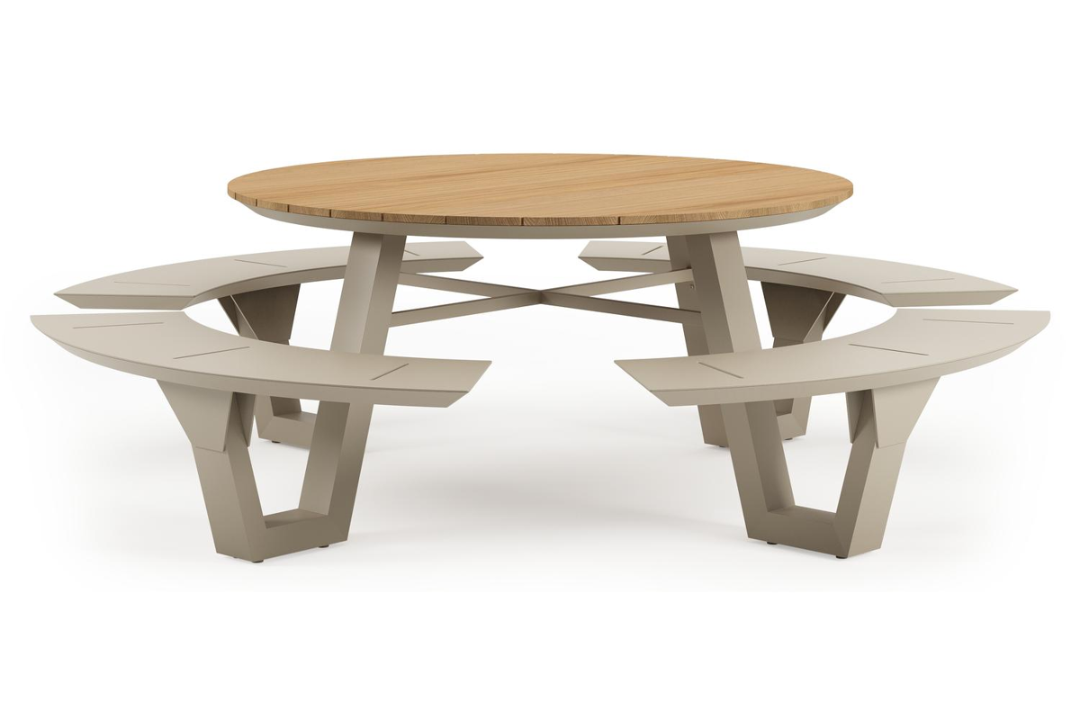 Rondino picknicktafel in beige aluminium en teak - Dia. 236 x H 71,5 cm | Exterioo