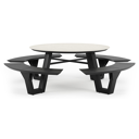 Rondino picknicktafel in beige aluminium en volkeramiek Shilin - Dia. 148 cm | Exterioo tuinmeubelen