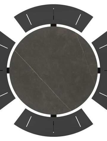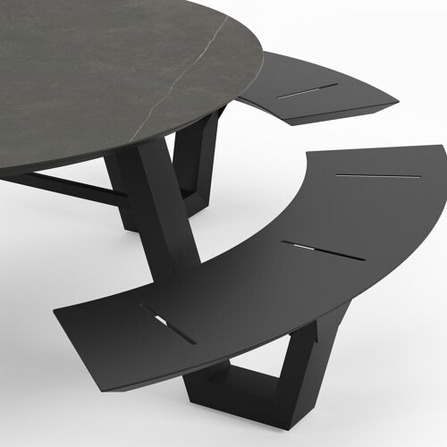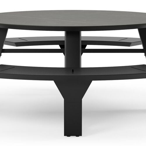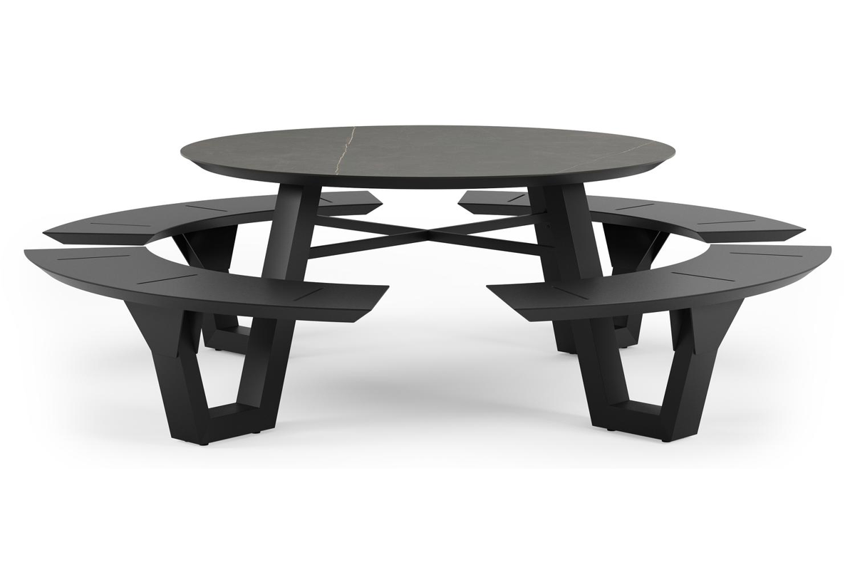 Rondino picknicktafel in zwart aluminium en volkeramiek calatorao tafelblad - Ø 236 x H 71,5 cm | Exterioo
