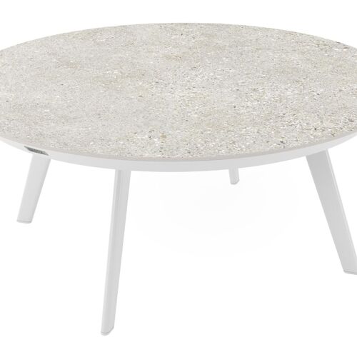 Rondo loungetafel in wit aluminium en shilin volkeramiek - Dia. 85 X H 35 cm | Exterioo