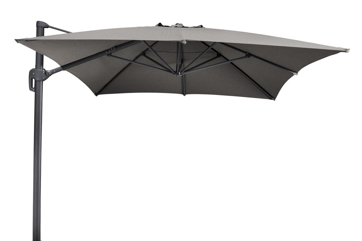 Rufina zweefparasol in zwart aluminium met solid taupe all weather sunbrella® luxe parasoldoek - L1: 300 x L2: 400 cm (zonder voet) | Exterioo