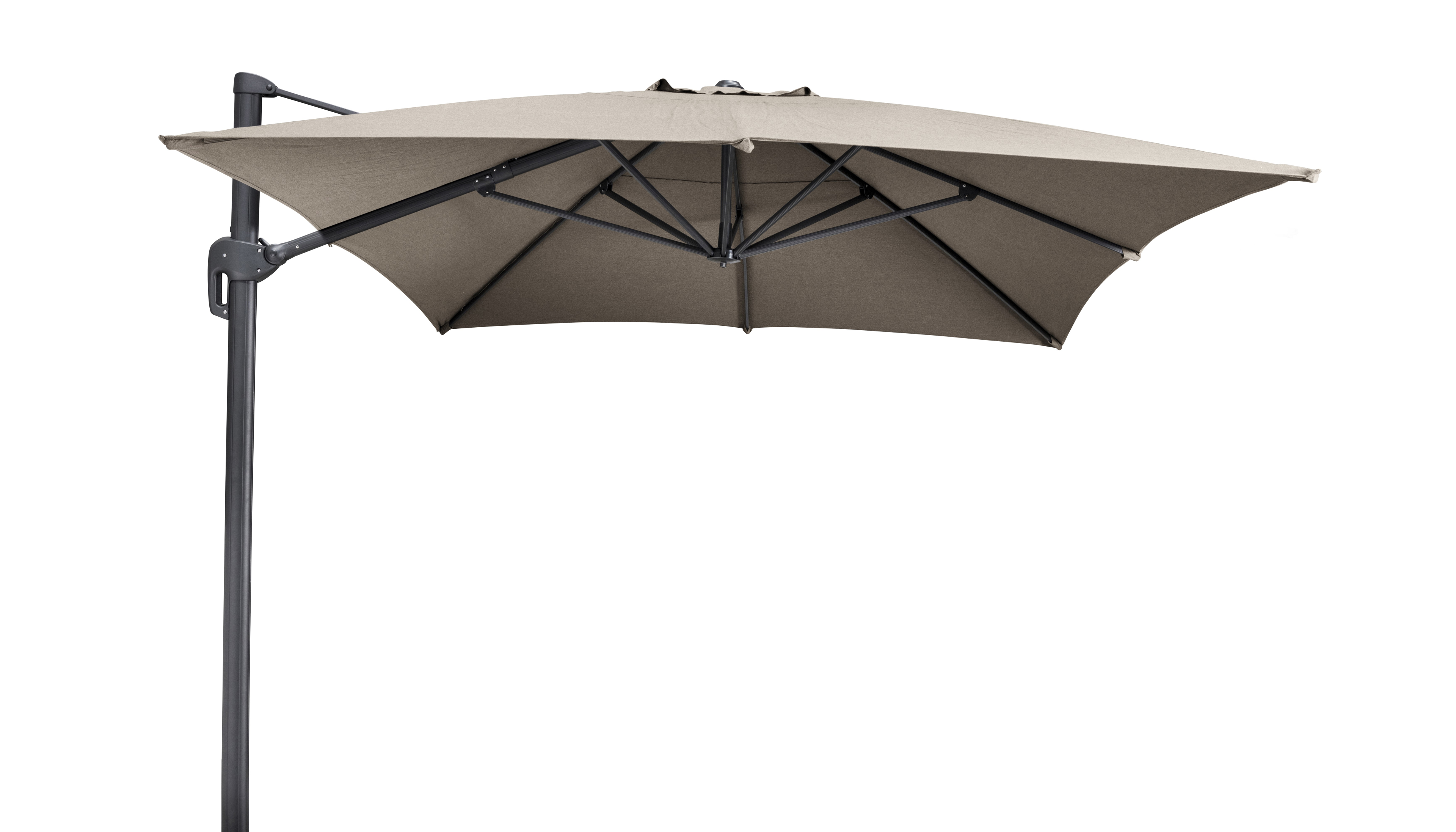 Rufina zweefparasol in zwart aluminium met natte heather beige all weather sunbrella® luxe parasoldoek - L1: 300 x L2: 400 cm (zonder voet) | Exterioo tuinmeubelen