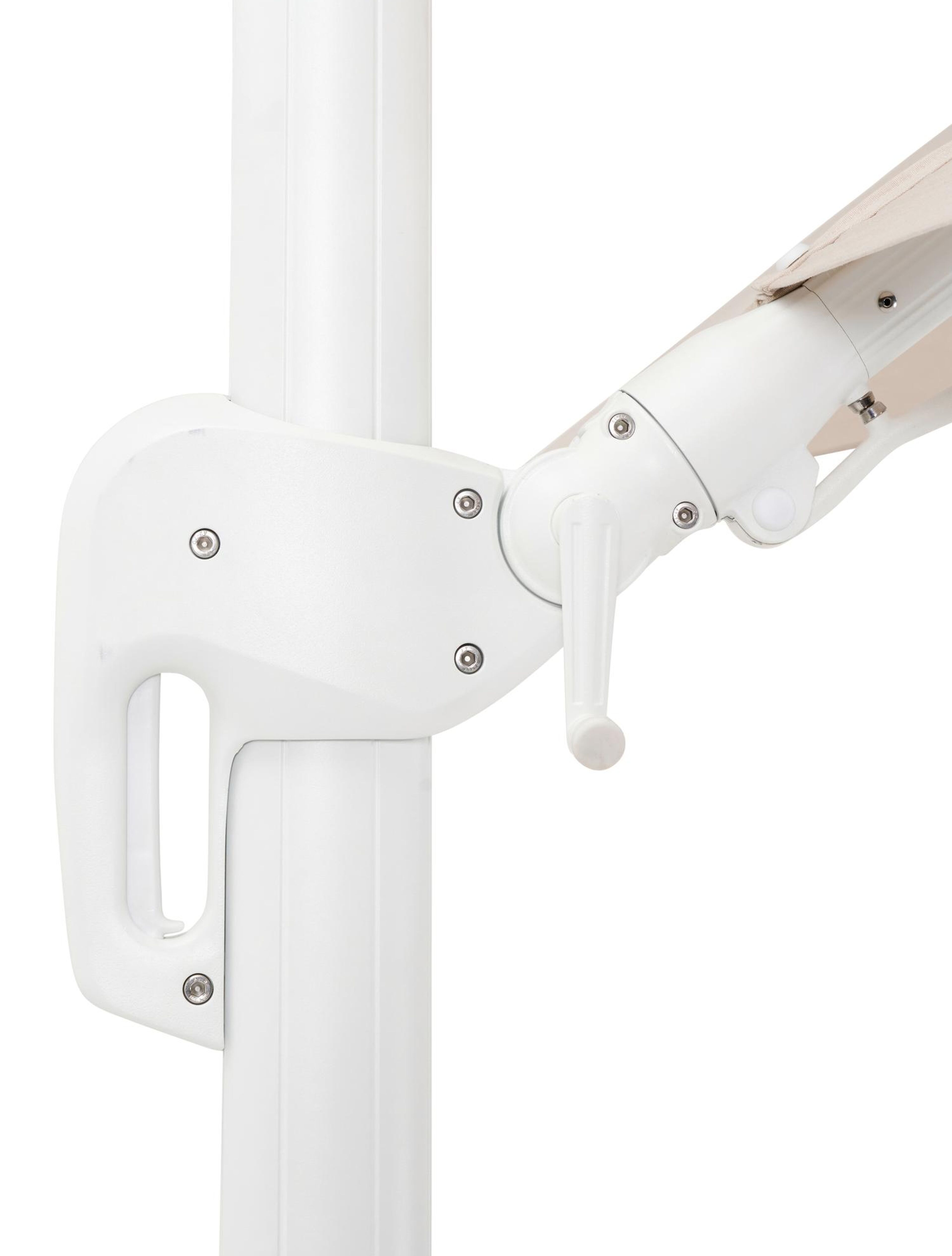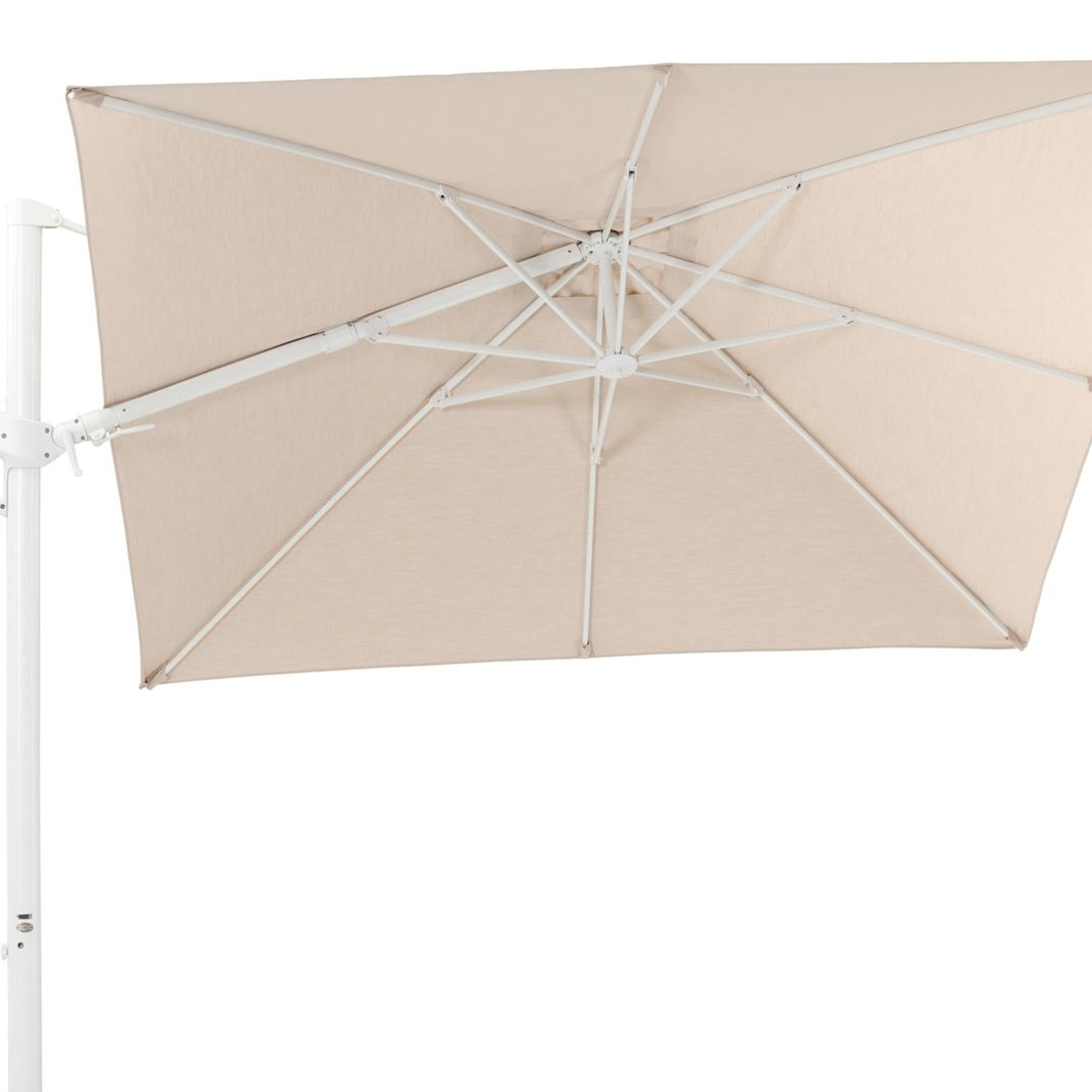 De Rufina parasol is een zeer gebruiksvriendelijke parasol. Het is een zweefparasol waardoor de mast niet in de weg staat. De parasol is makkelijk open te draaien via de hendel. Bovendien is hij ook in hoogte verstelbaar en beschikt de Rufina parasol ook over een tilt-functie. Deze functie biedt de mogelijkheid om de parasol te kantelen, zodat je de stand kunt aanpassen naar de positie van de zon.