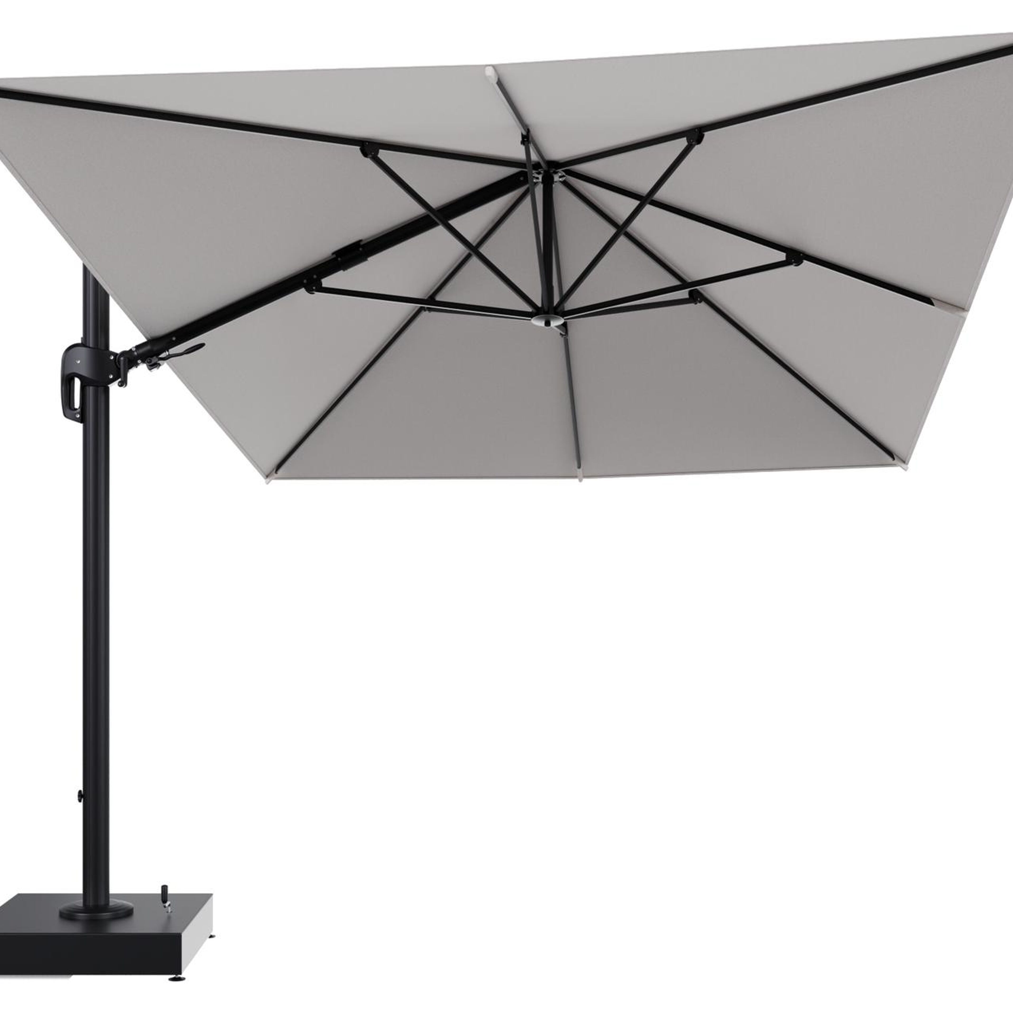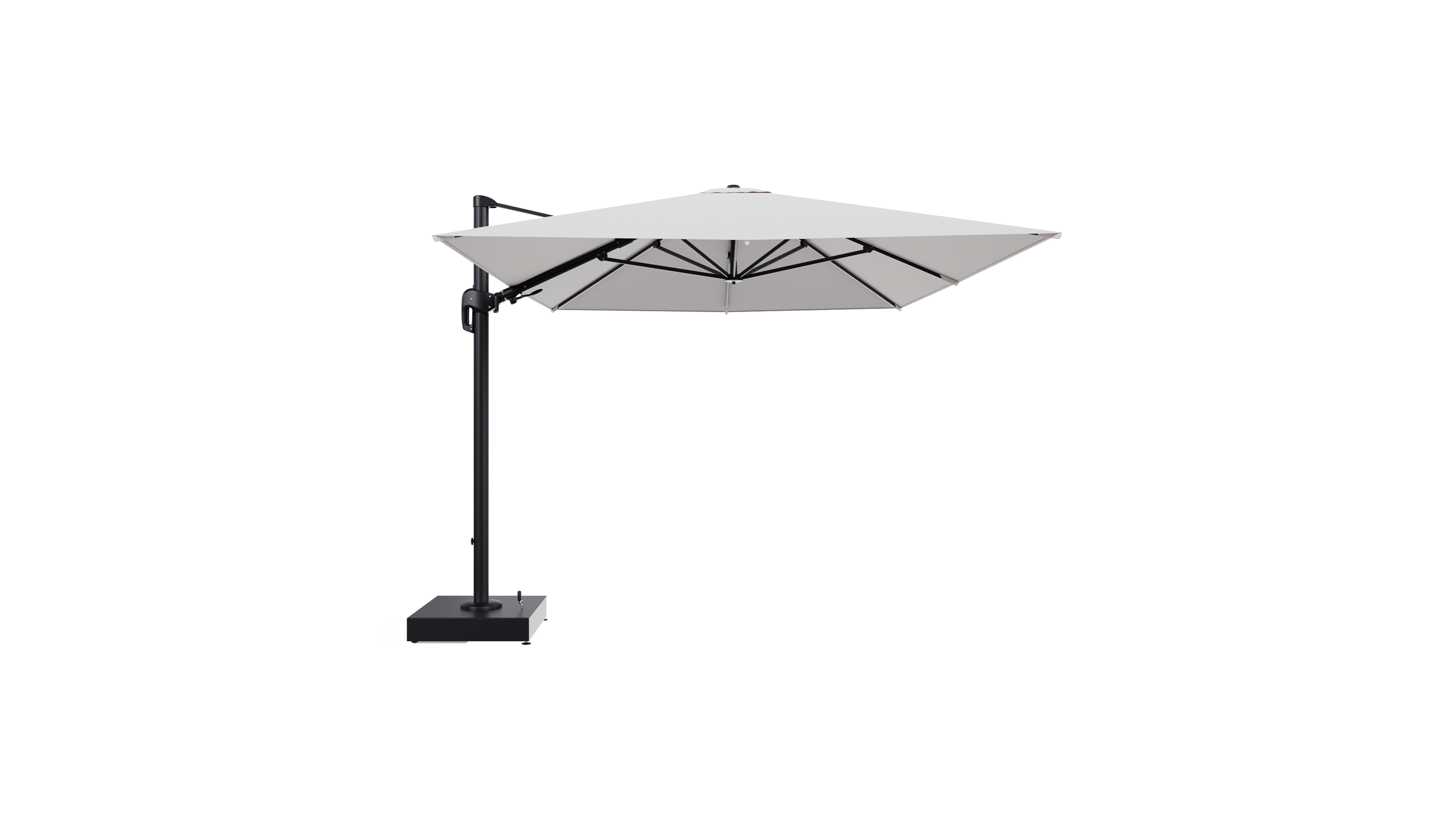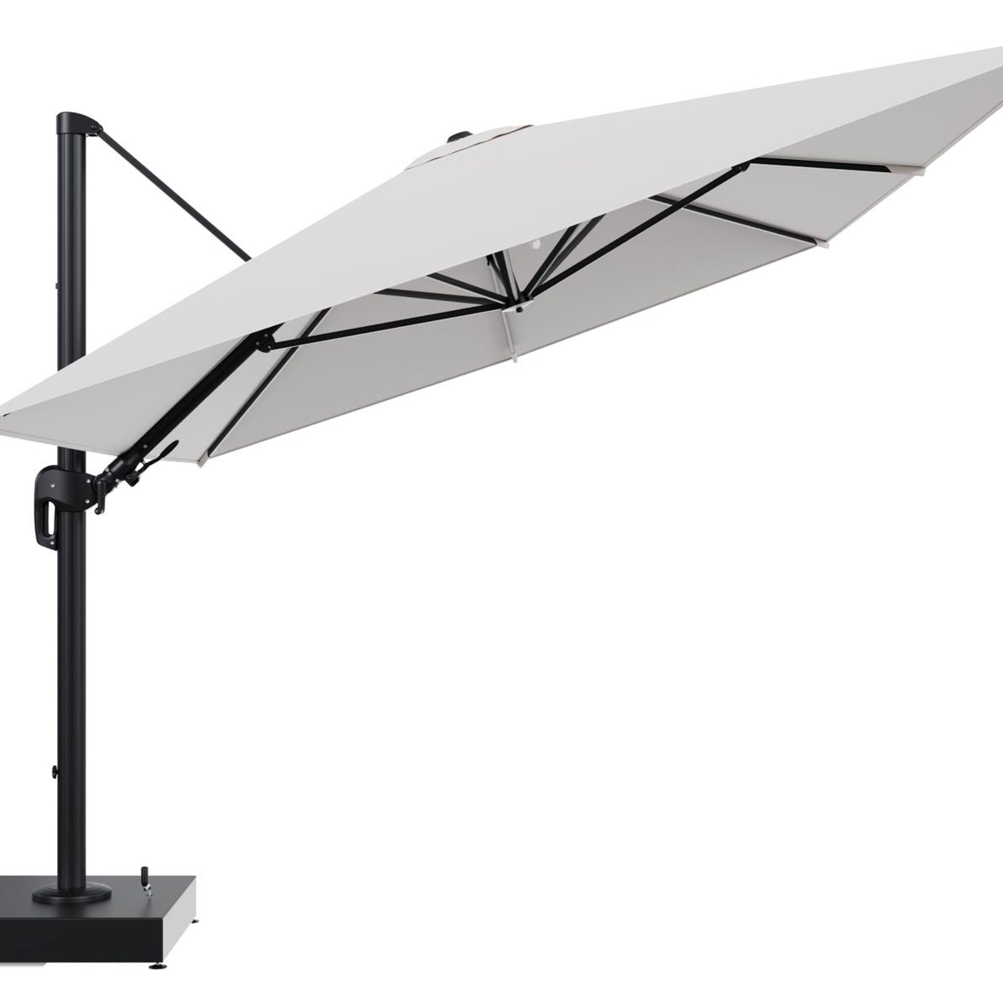 Rufina zweefparasol met tiltfunctie in zwart aluminium en Ego Eggshell All Weather Solica parasoldoek - L1 400 x L2 300 cm met parasolvoet Minore 150 kg met wielen | Exterioo tuinmeubelen