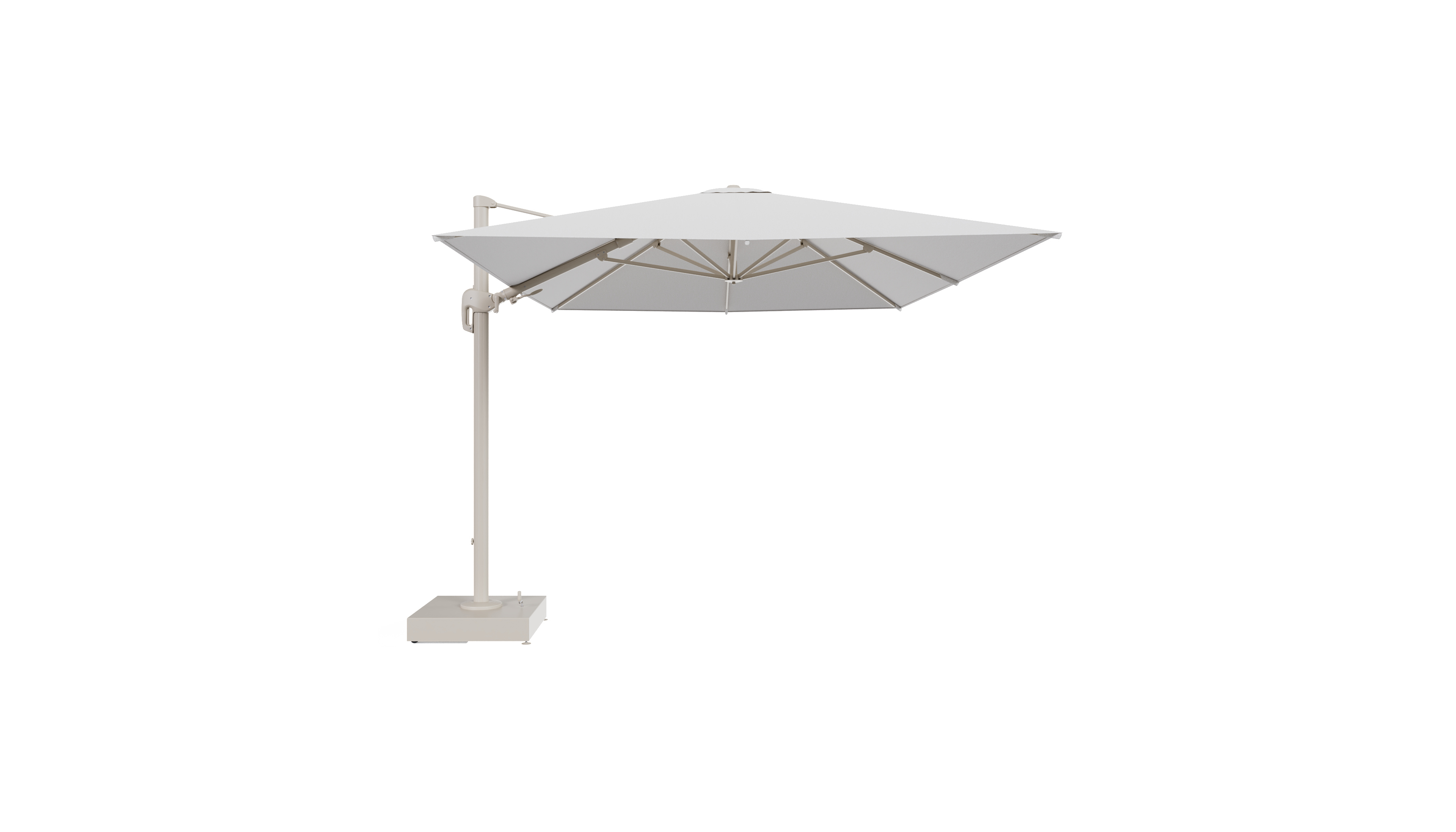Rufina zweefparasol met tiltfunctie in beige aluminium en Ego Birch All Weather Solica parasoldoek - L1 400 x L2 300 cm met parasolvoet Minore 150 kg met wielen | Exterioo tuinmeubelen