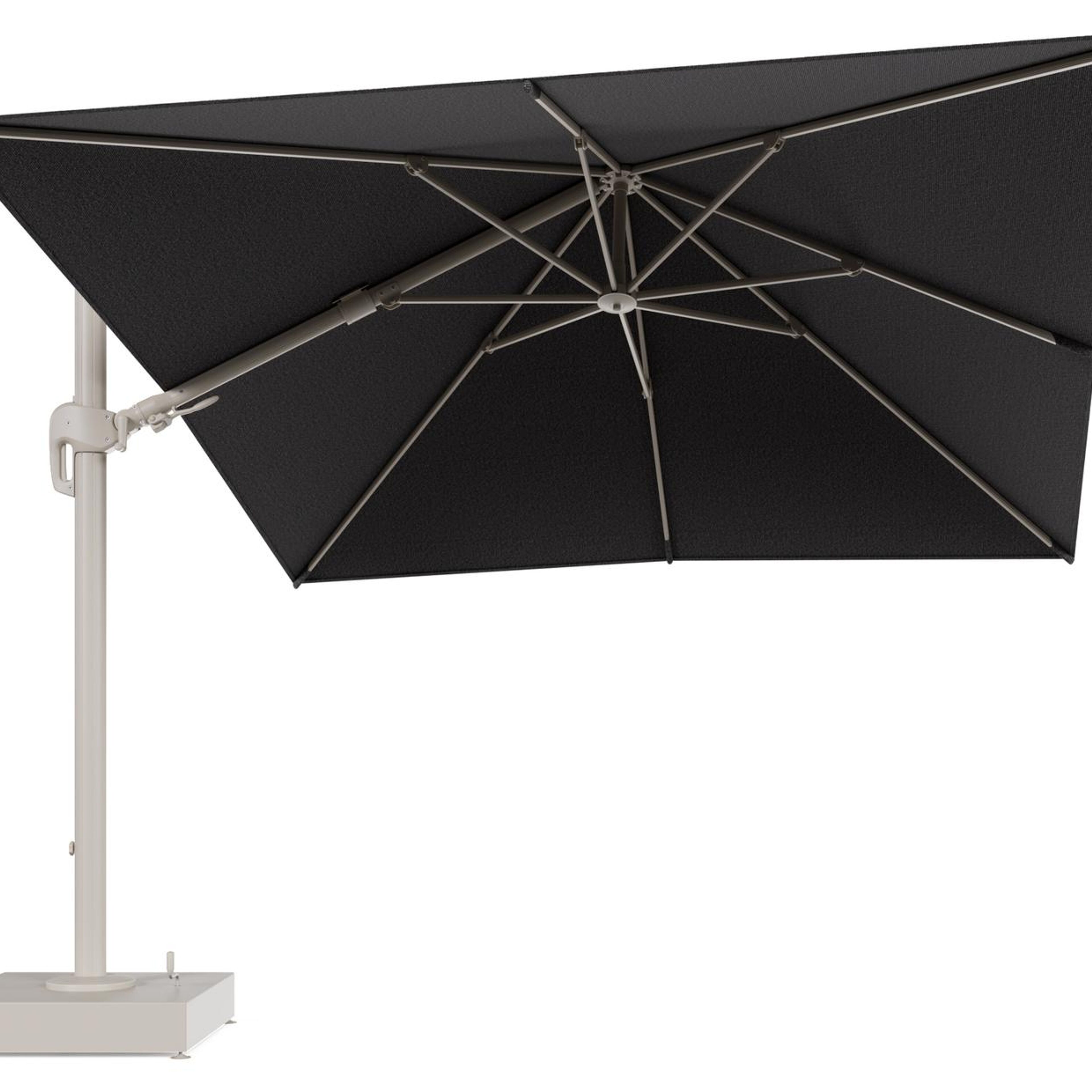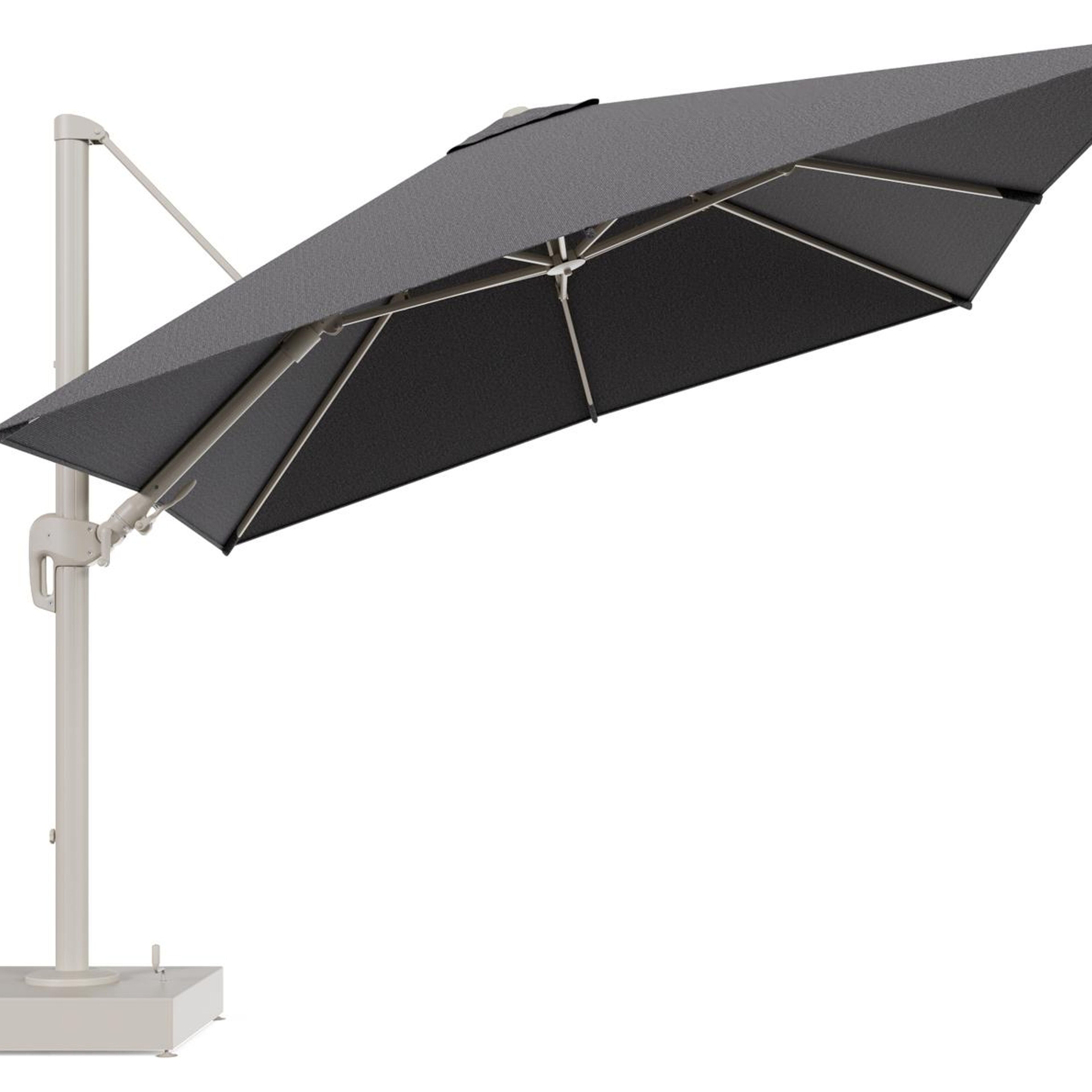 Rufina zweefparasol met tiltfunctie in beige aluminium en Firenze Tunder All Weather Solica parasoldoek - L1 300 x L2 300 cm met parasolvoet Minore 150 kg met wielen | Exterioo tuinmeubelen