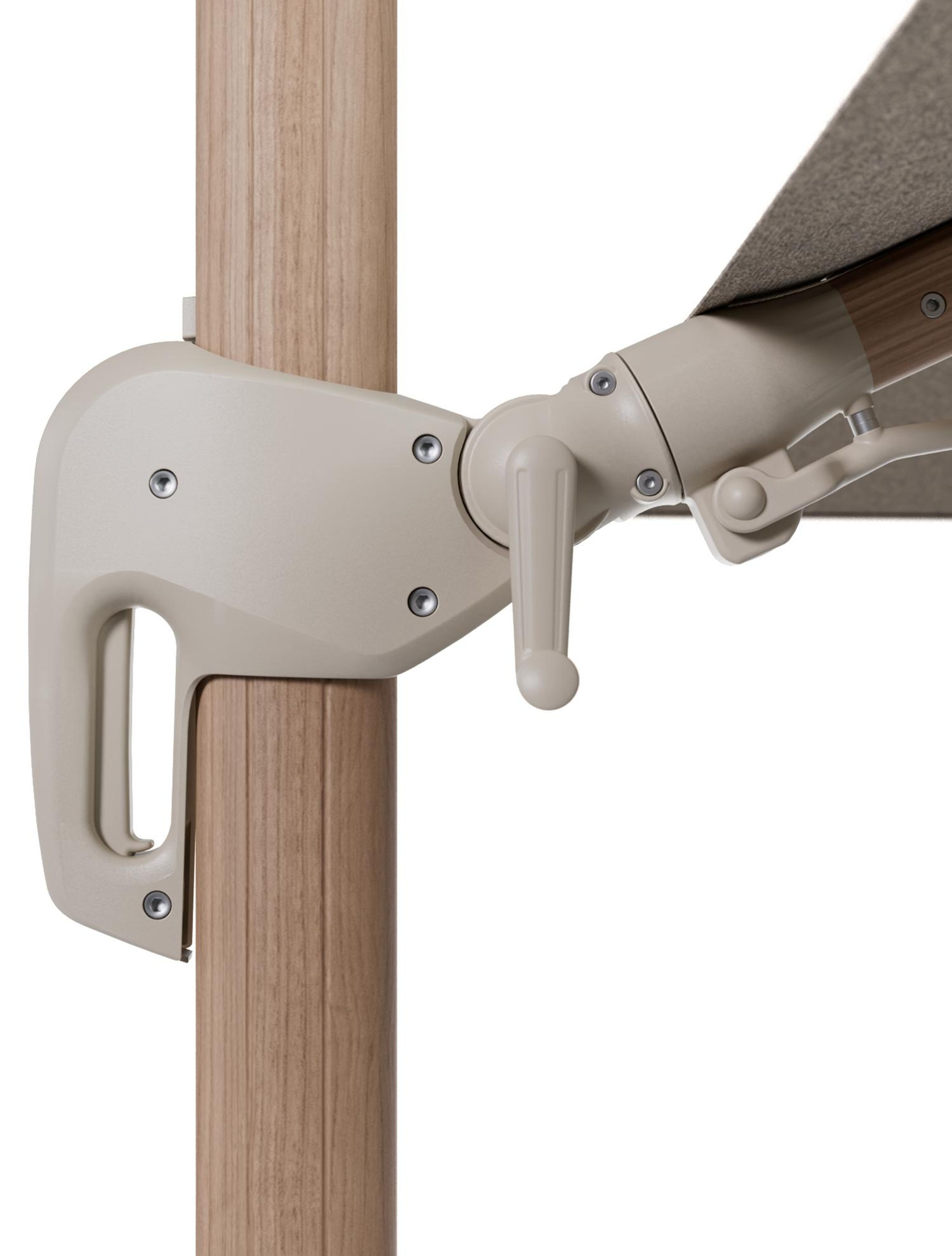 De Rufina zweefparasol is een zeer gebruiksvriendelijke parasol. Het is een zweefparasol waardoor de mast niet in de weg staat. De parasol is makkelijk open te draaien via de hendel. Bovendien is hij ook in hoogte verstelbaar en beschikt de Rufina parasol ook over een tilt-functie. Deze functie biedt de mogelijkheid om de parasol te kantelen, zodat je de stand kunt aanpassen naar de positie van de zon.