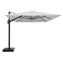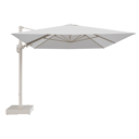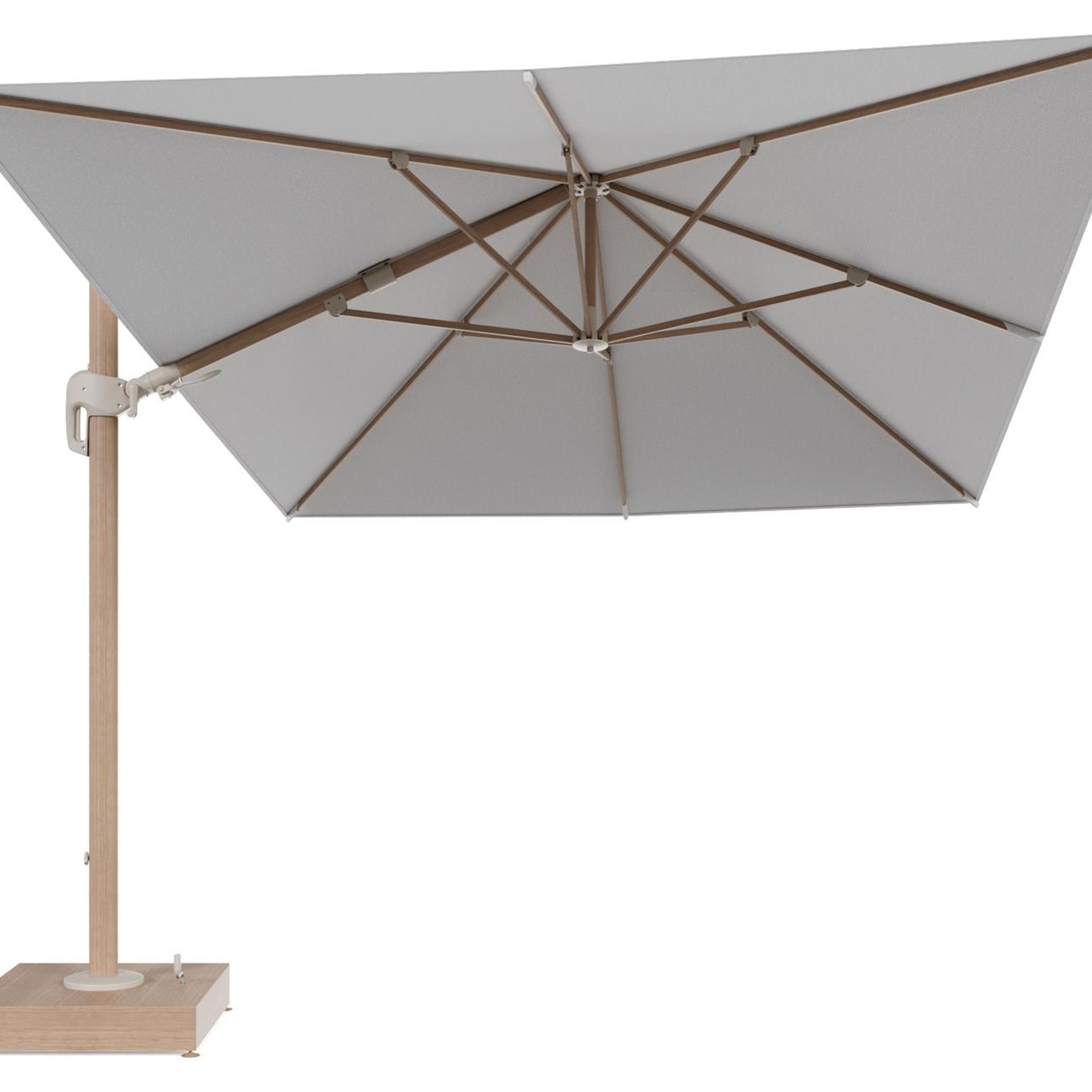 Rufina zweefparasol met tiltfunctie in houtlook aluminium en Ego Birch All Weather Solica parasoldoek - L1 400 x L2 300 cm met parasolvoet Minore 150 kg met wielen | Exterioo tuinmeubelen