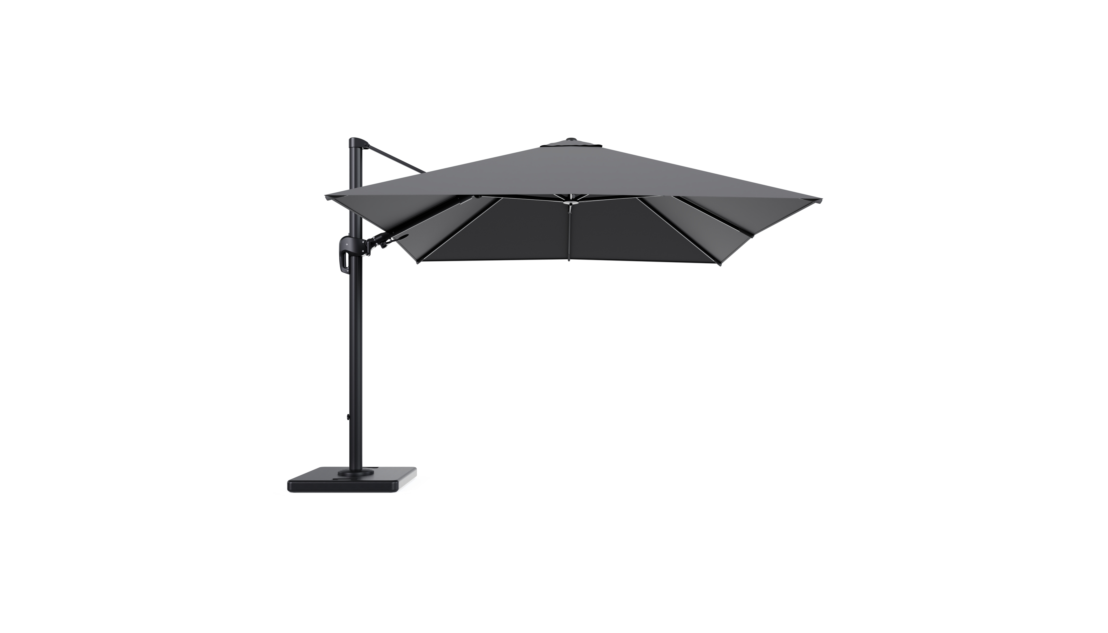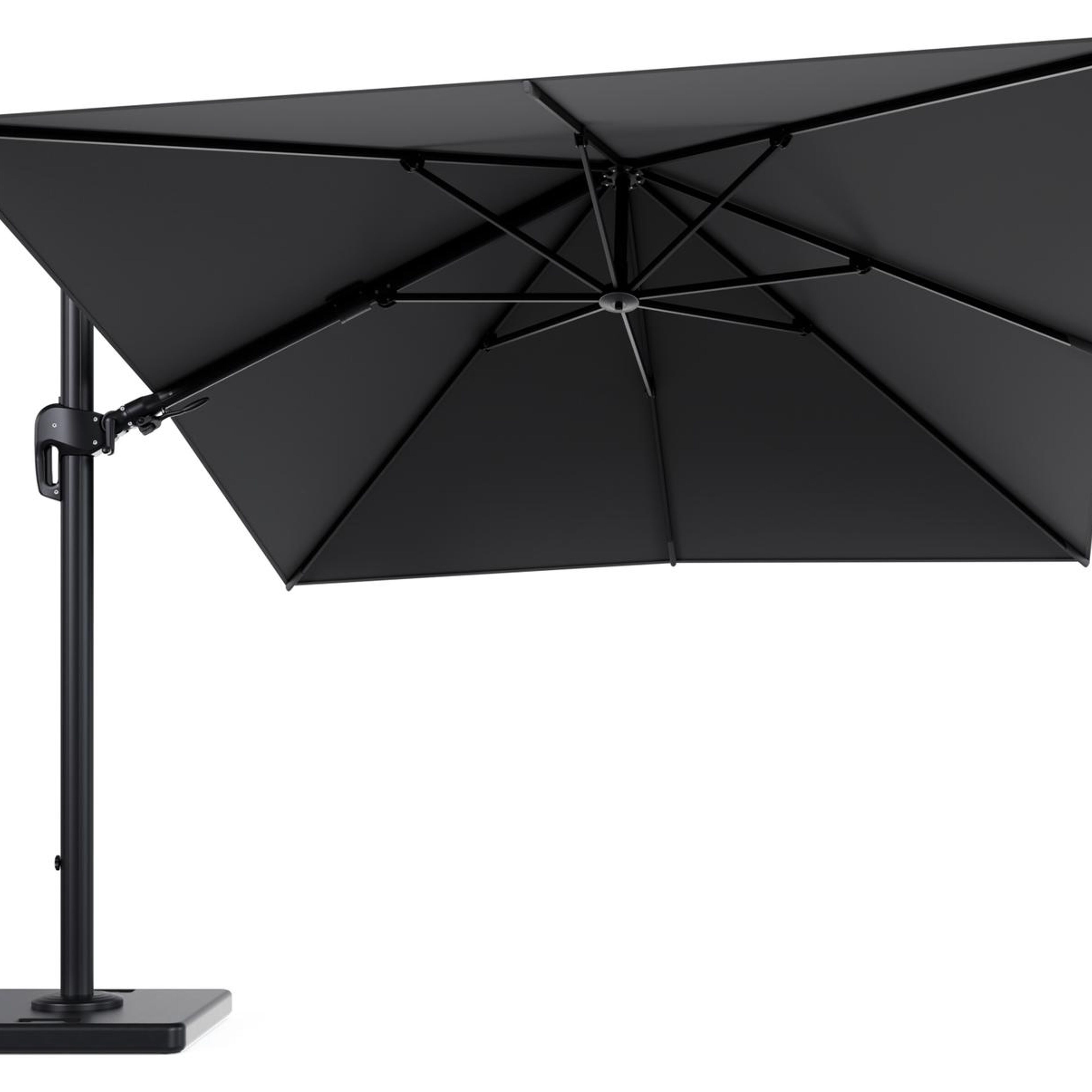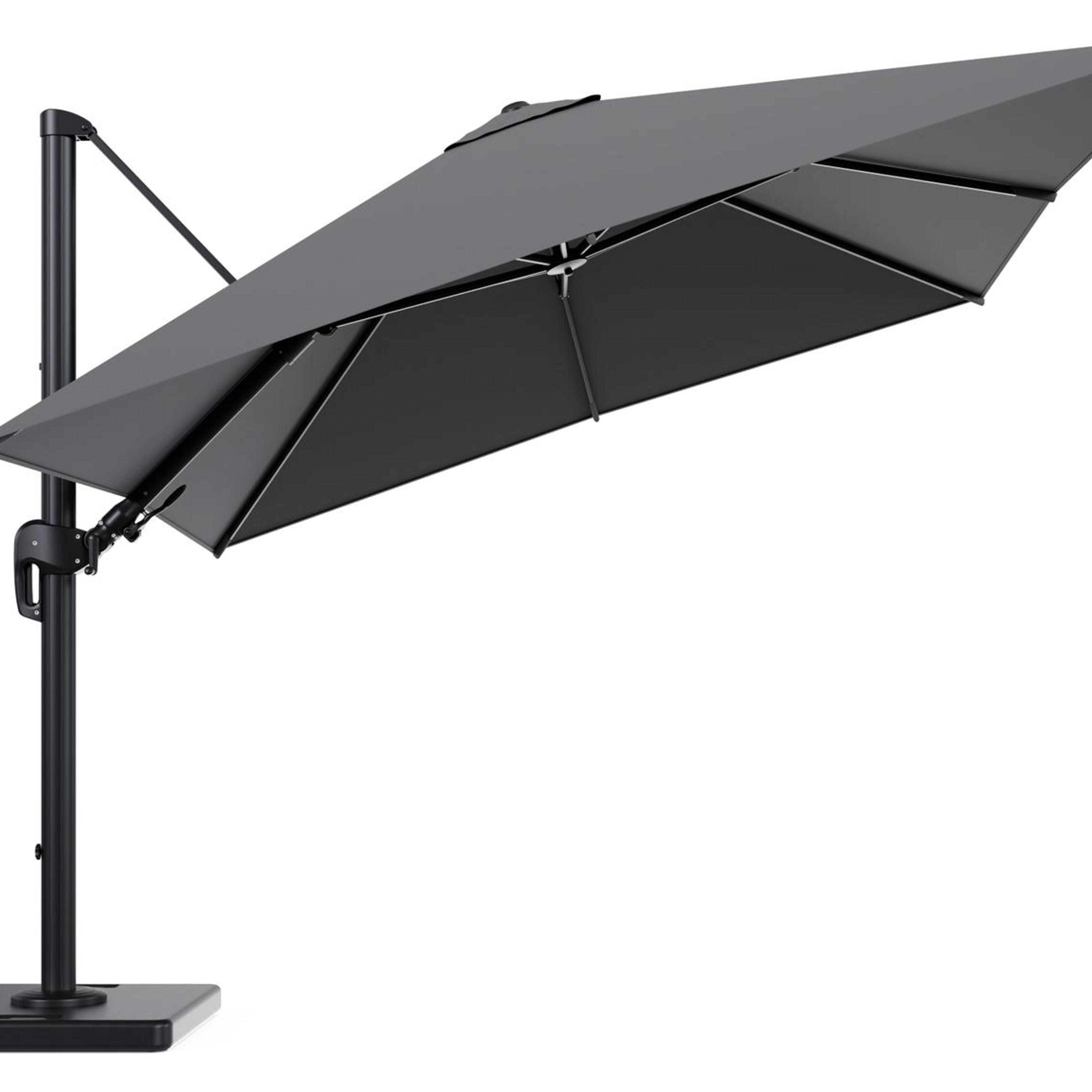 De parasol wordt geleverd met een 120 kg Lapido parasolvoet uit beton. Deze stevige basis zorgt voor de nodige stabiliteit op je terras.
