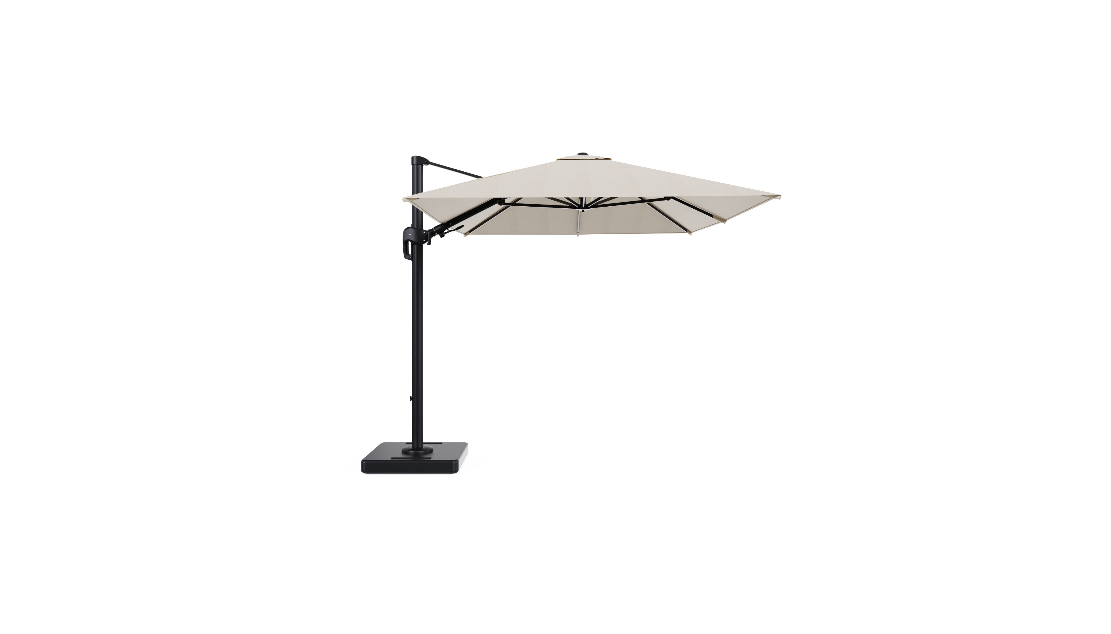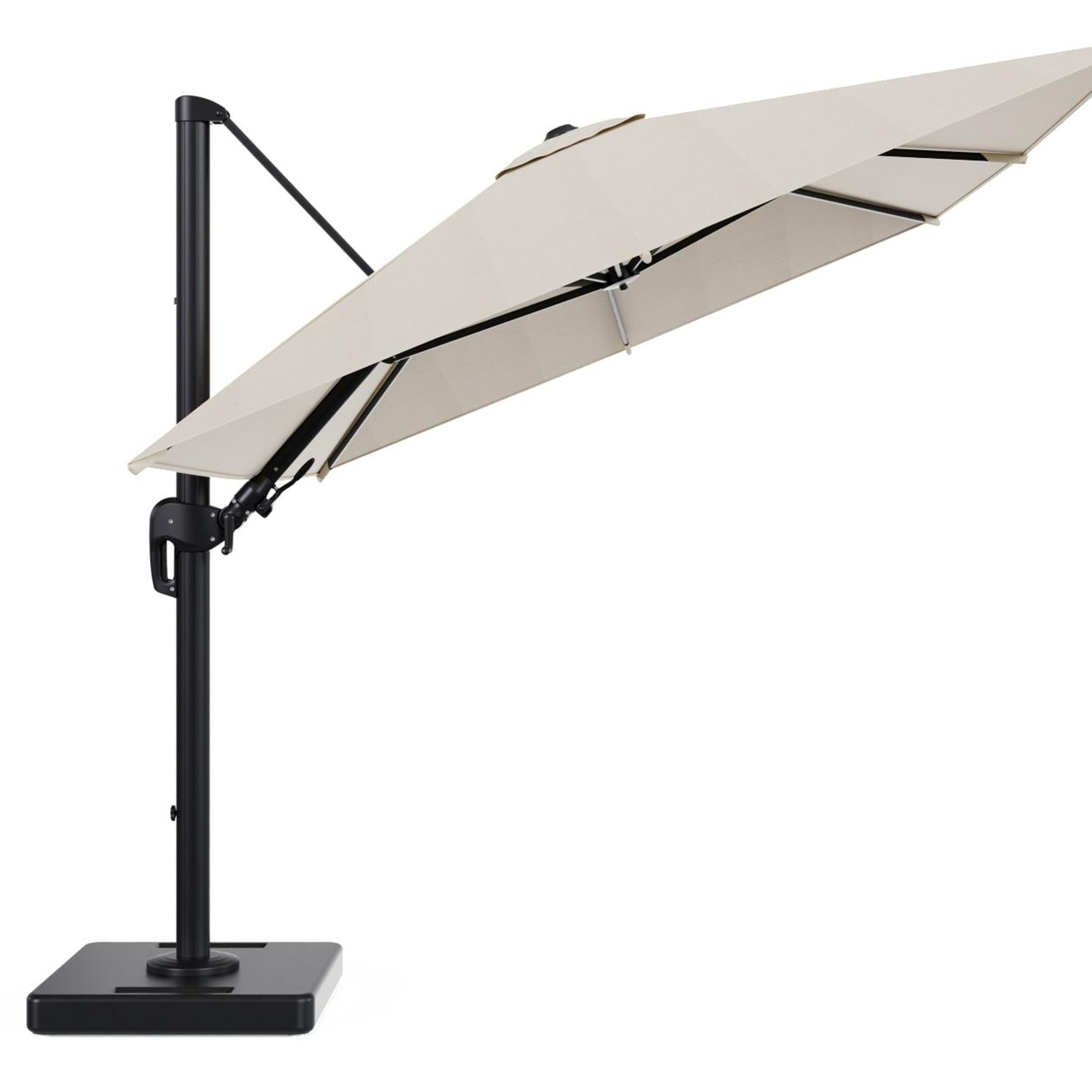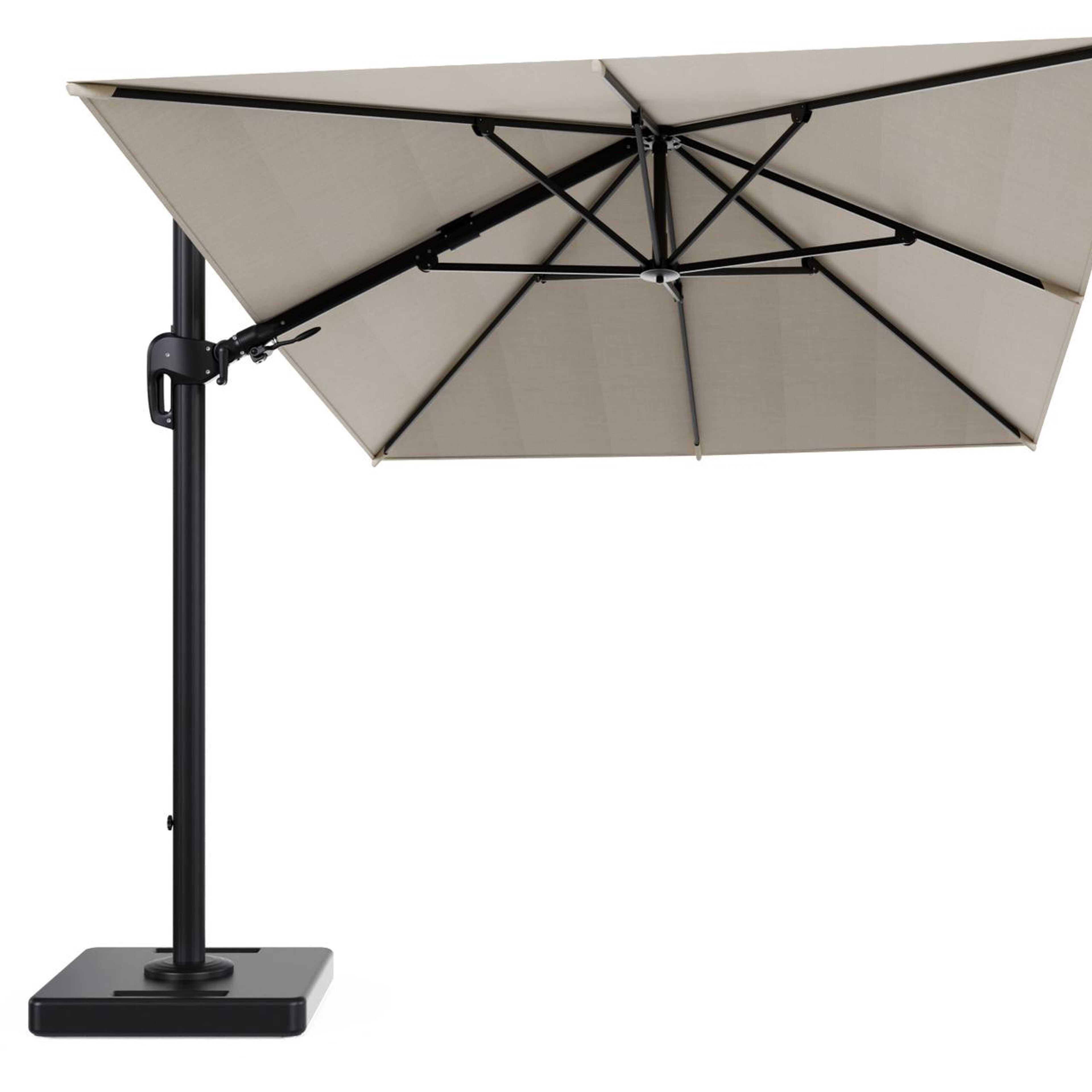 De parasol wordt geleverd met een 160 kg Lapido XL parasolvoet uit beton. Deze zware basis zorgt voor extra stabiliteit op je terras.