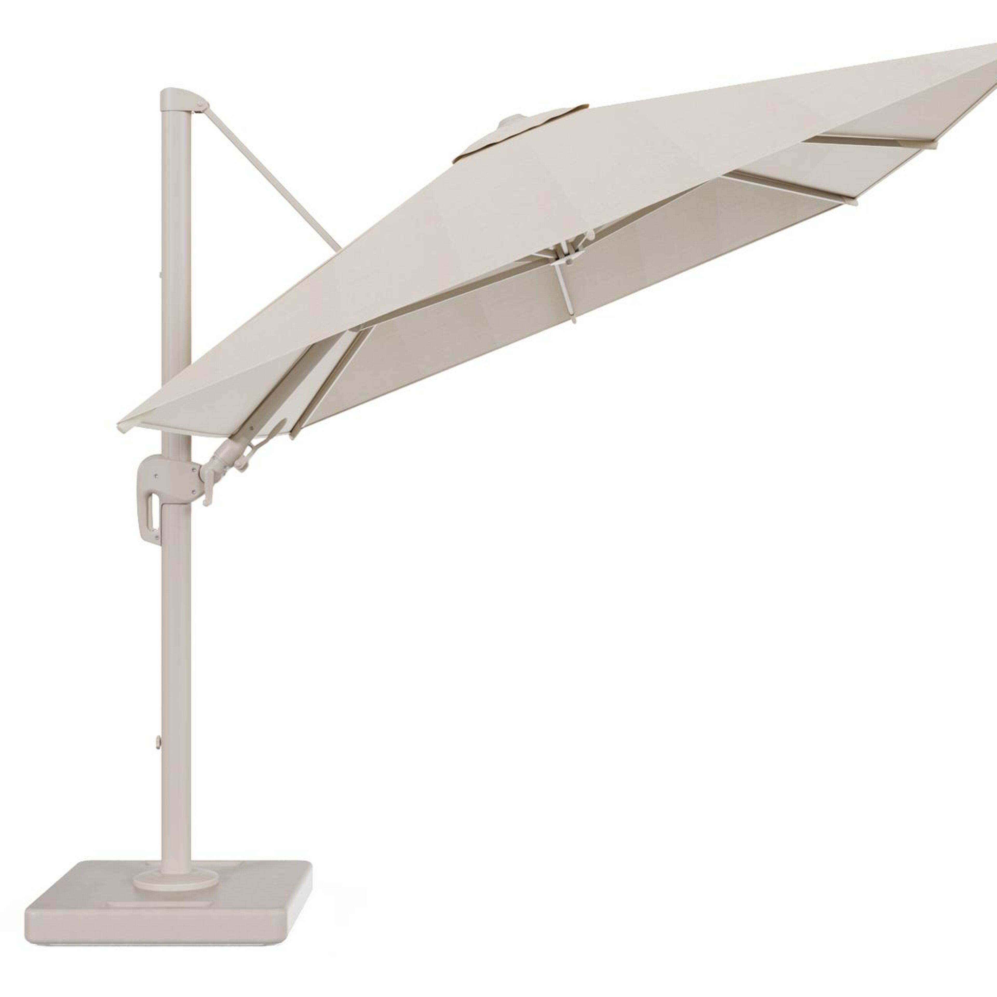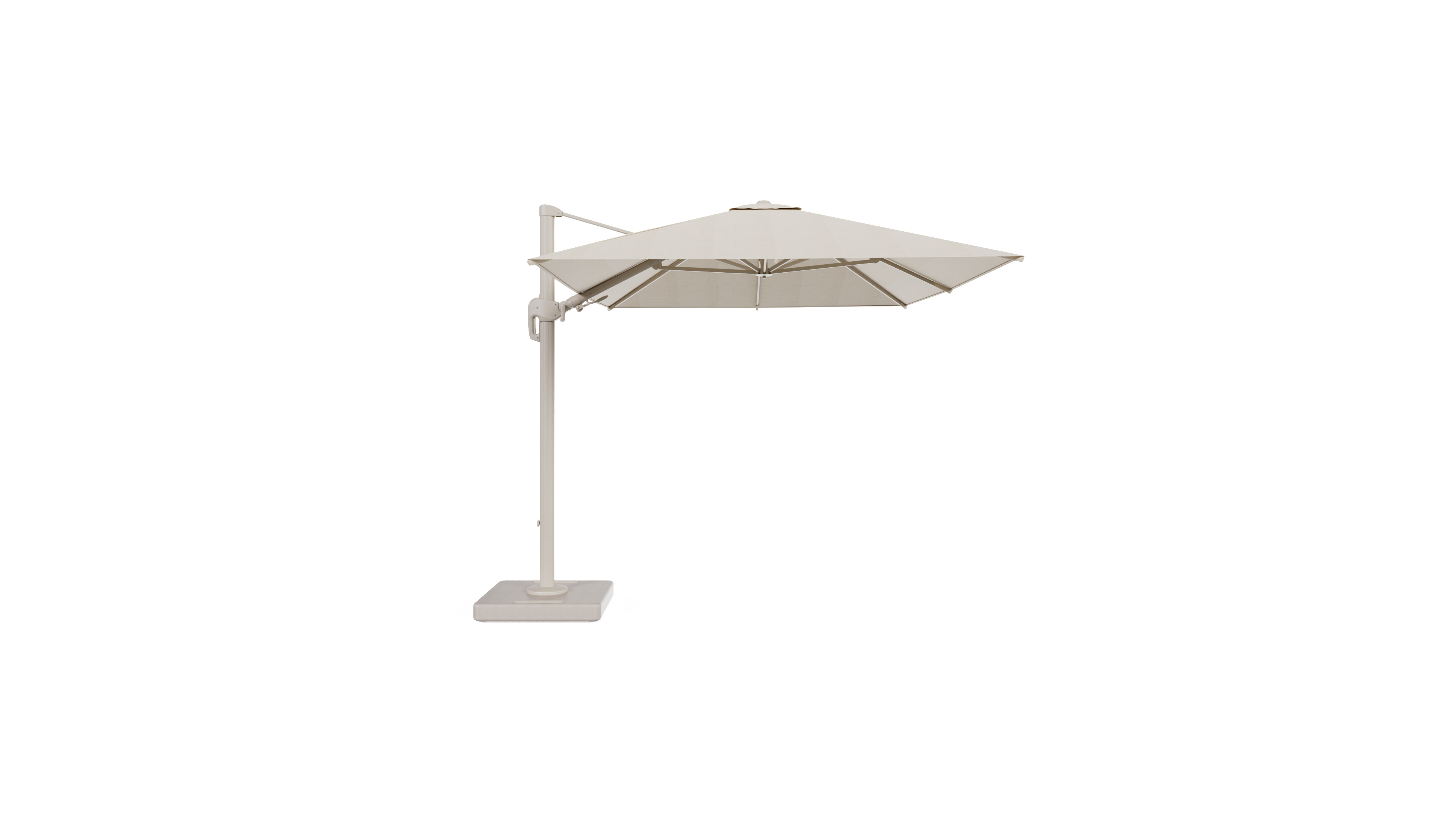 De parasol wordt geleverd met een 160 kg Lapido XL parasolvoet uit beton. Deze zware basis zorgt voor extra stabiliteit op je terras.