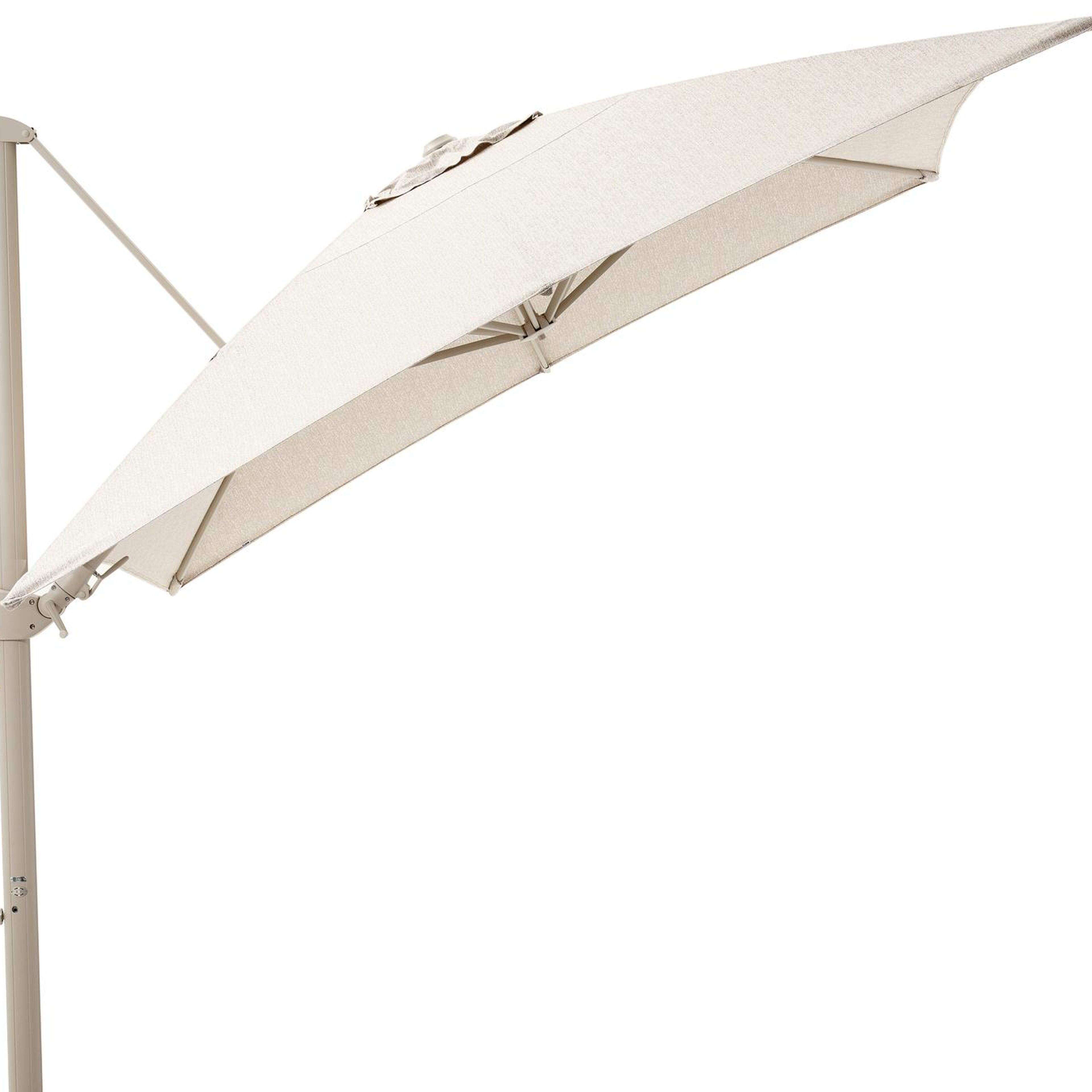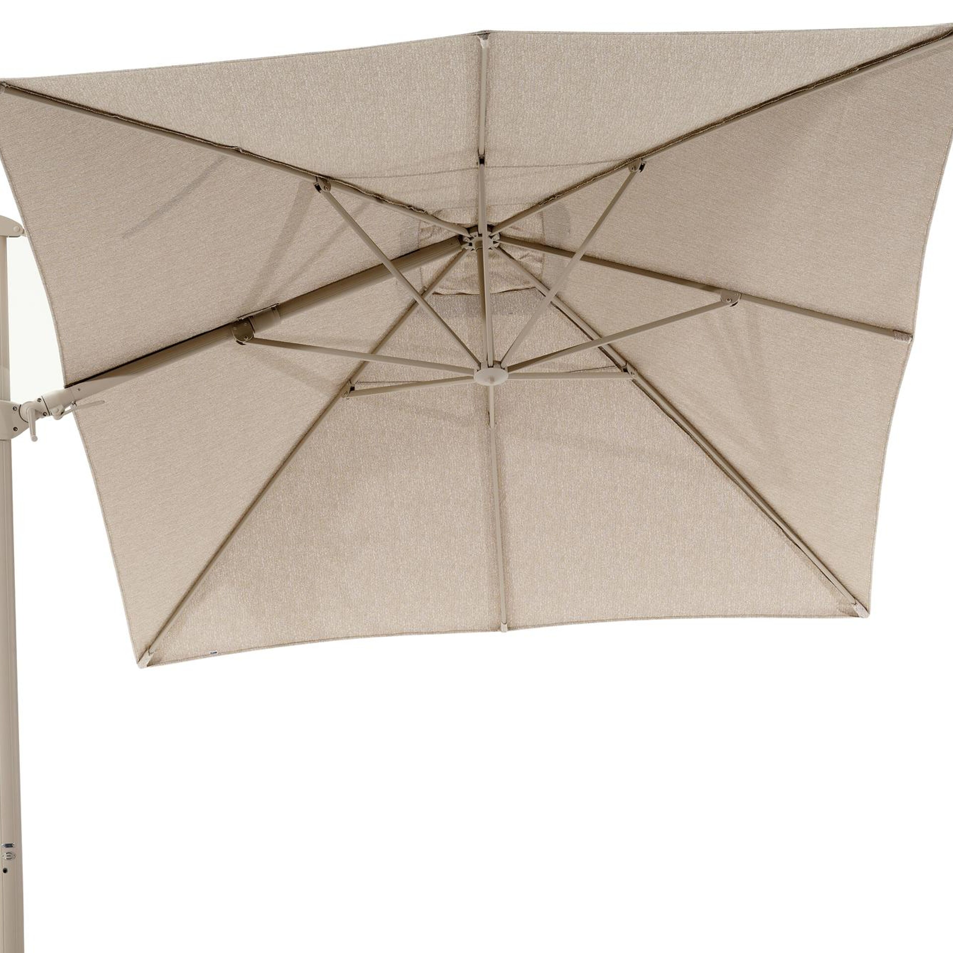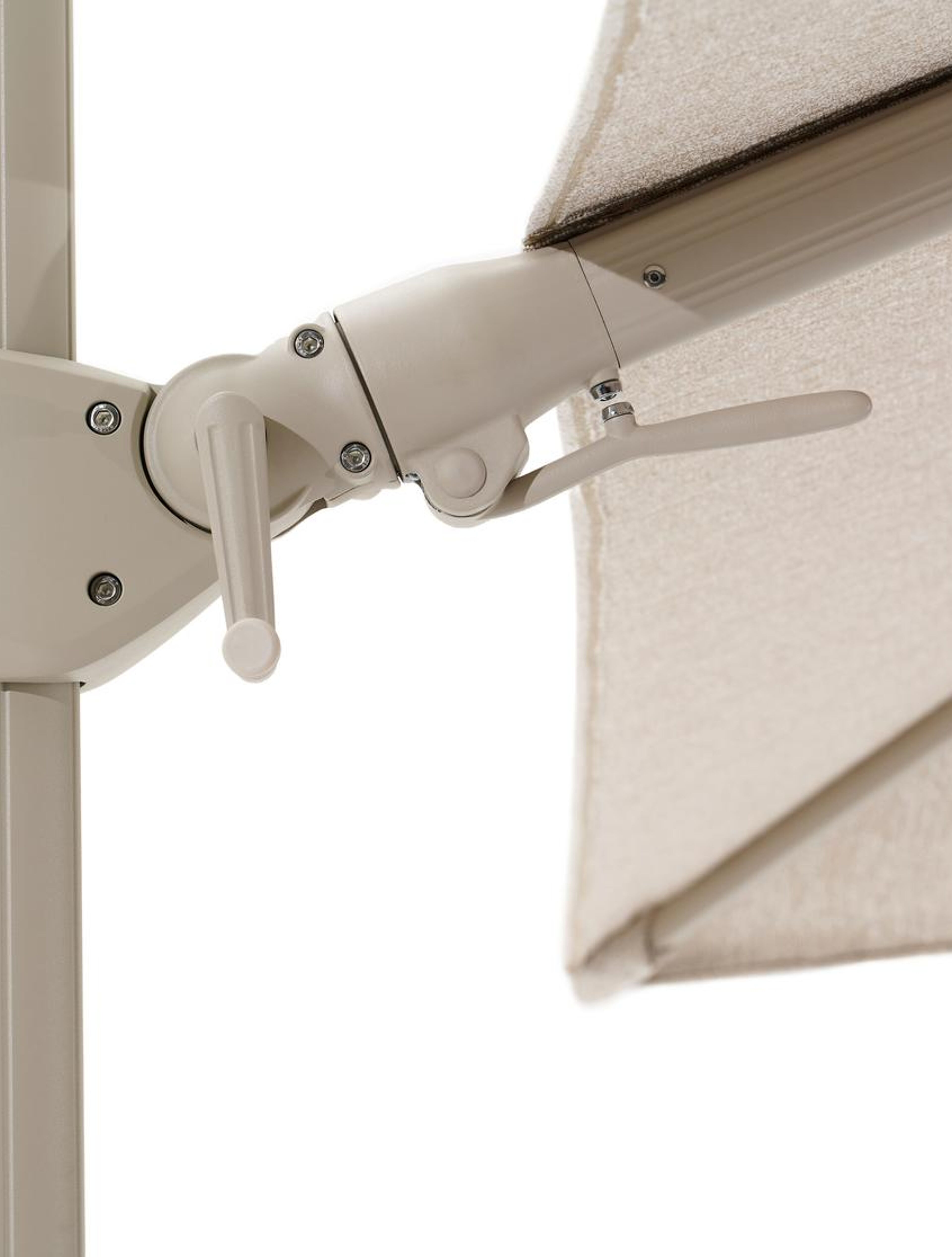 De Rufina parasol is een zeer gebruiksvriendelijke parasol. Het is een zweefparasol waardoor de mast niet in de weg staat. De parasol is makkelijk open te draaien via de hendel. Bovendien is hij ook in hoogte verstelbaar en beschikt deRufina parasol ook over een tilt-functie. Deze functie biedt de mogelijkheid om de parasol te kantelen, zodat je de stand kunt aanpassen naar de positie van de zon. De parasol is afgewerkt met een Sunbrella luxe parasoldoek. Een hoogwaardig materiaal dat perfect kleurvast is en UV-bestendig.
