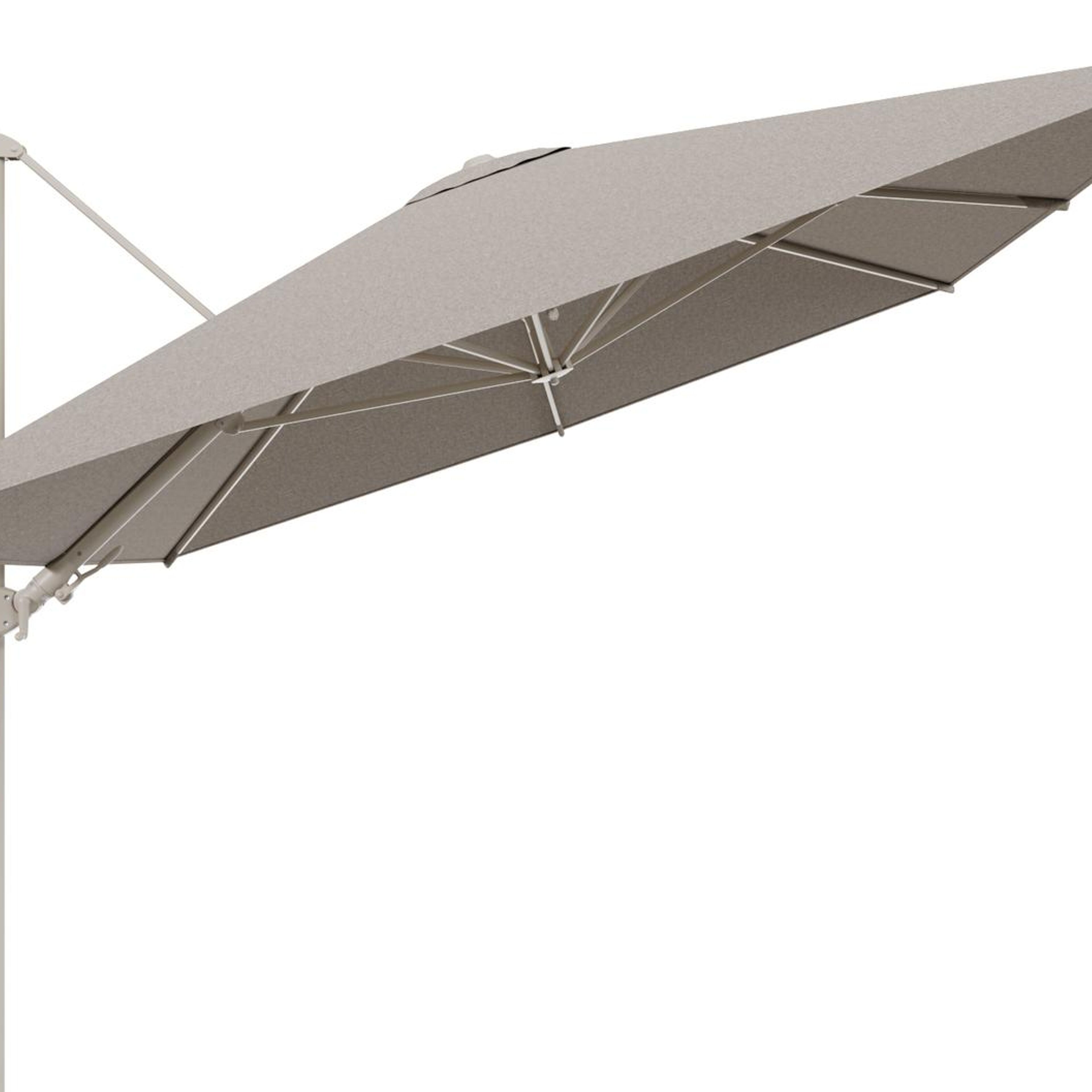 De parasoldoek is gemaakt van All Weather Sunbrella® Luxe, een stijlvolle, weerbestendige stof met een coating die niet enkel waterafstotend is maar ook beschermt tegen vuil, vlekken en vloeistoffen.