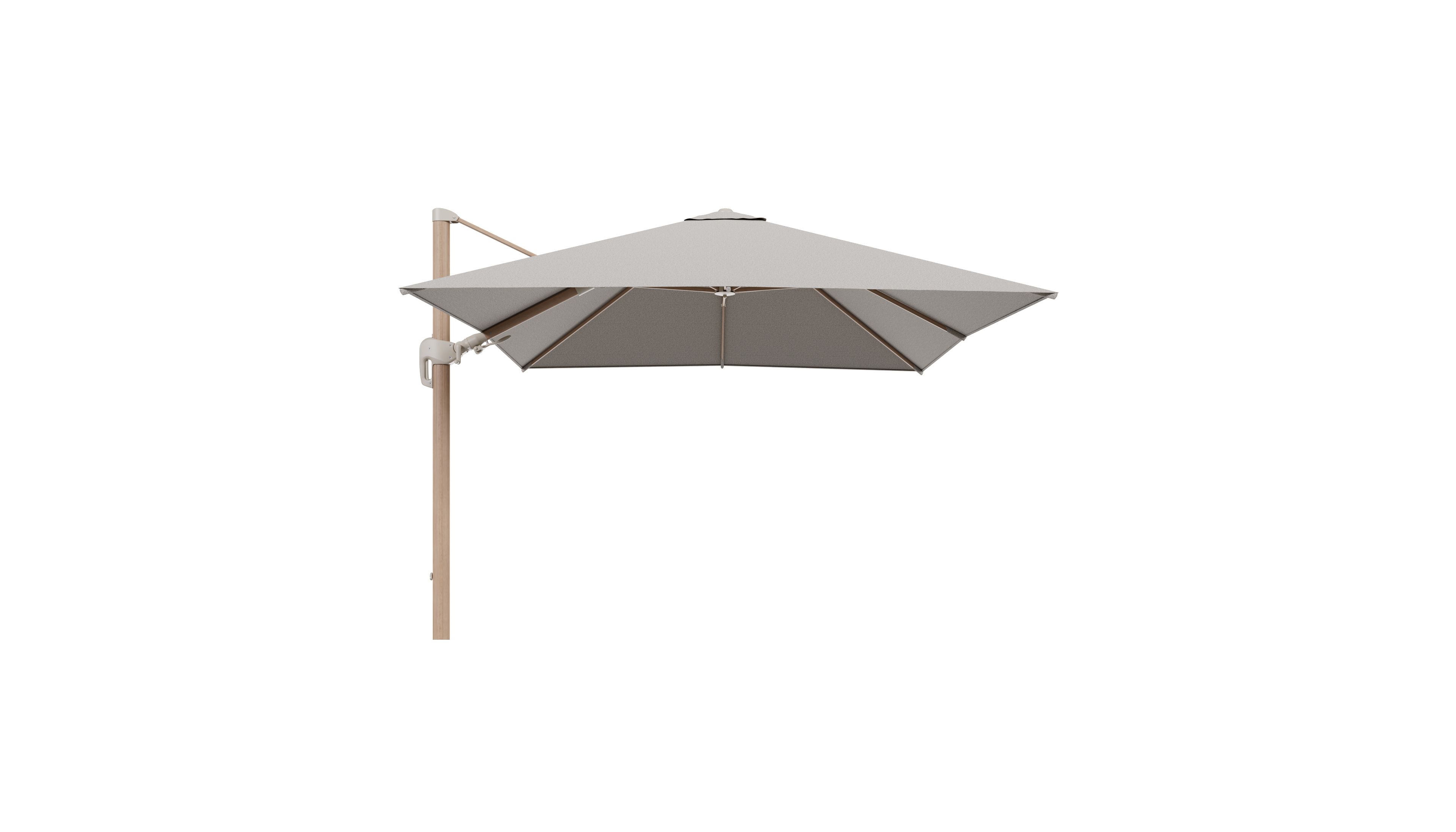 Rufina zweefparasol tiltfunctie in houtlook aluminium en parasoldoek in All Weather Solica Firenze Sand - L1 300 x L2 300 cm (zonder voet) (zonder voet) | Exterioo tuinmeubelen