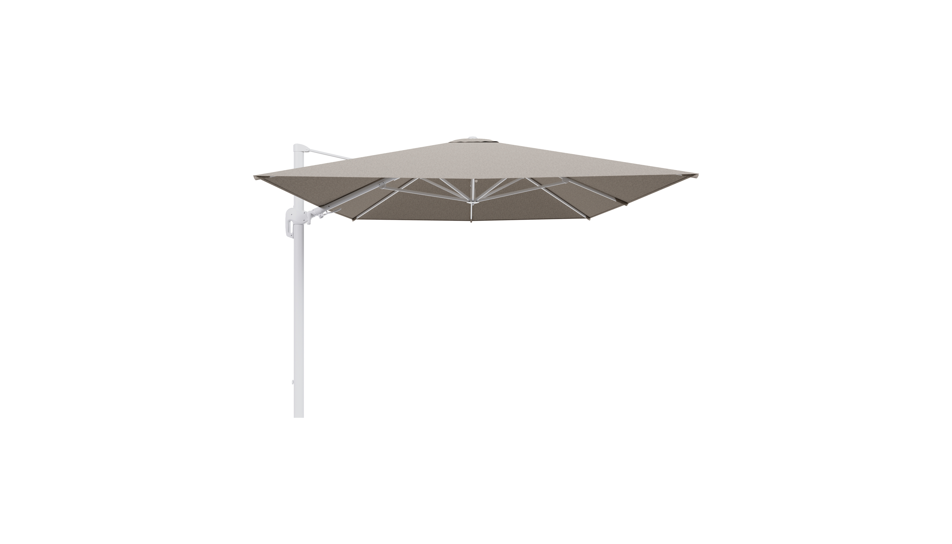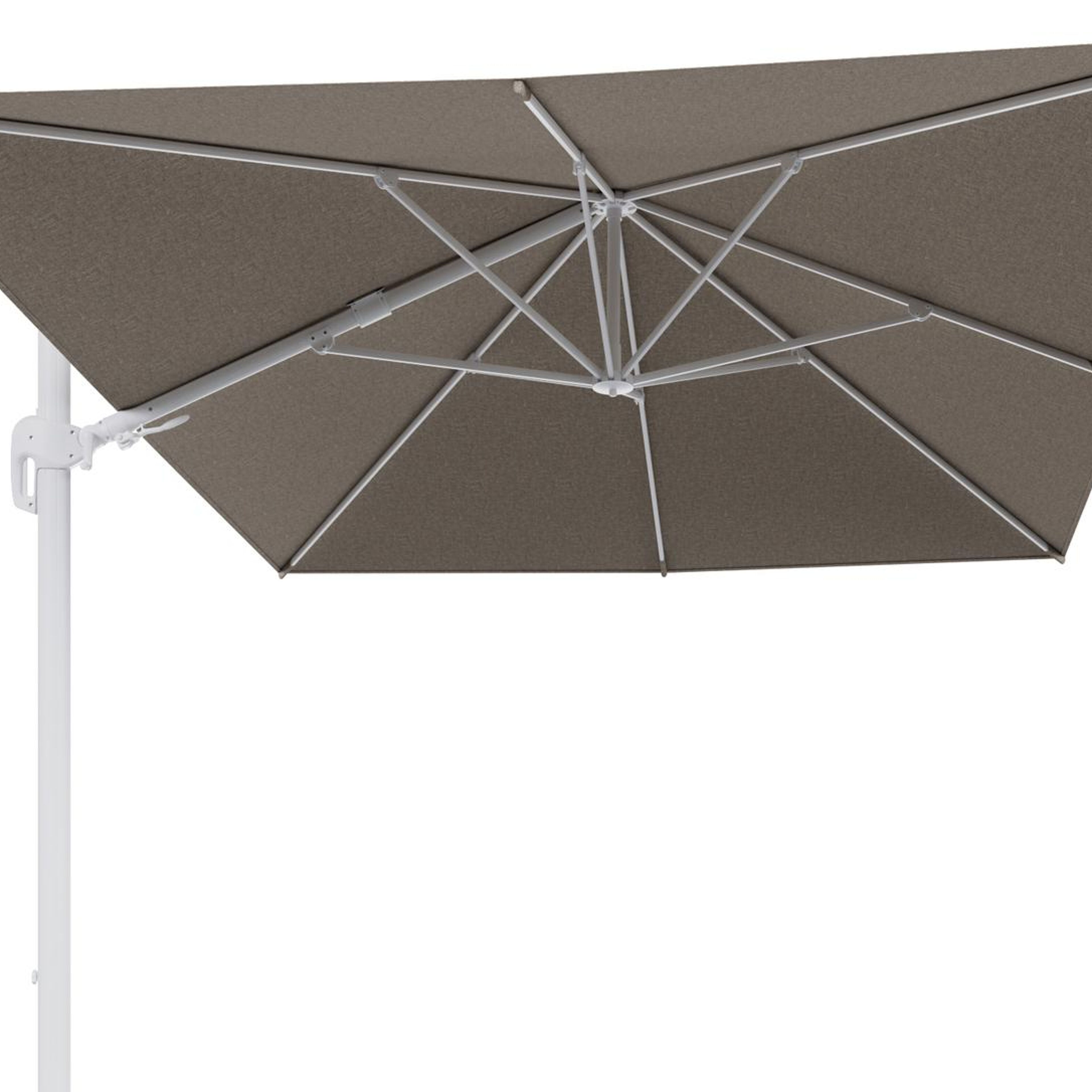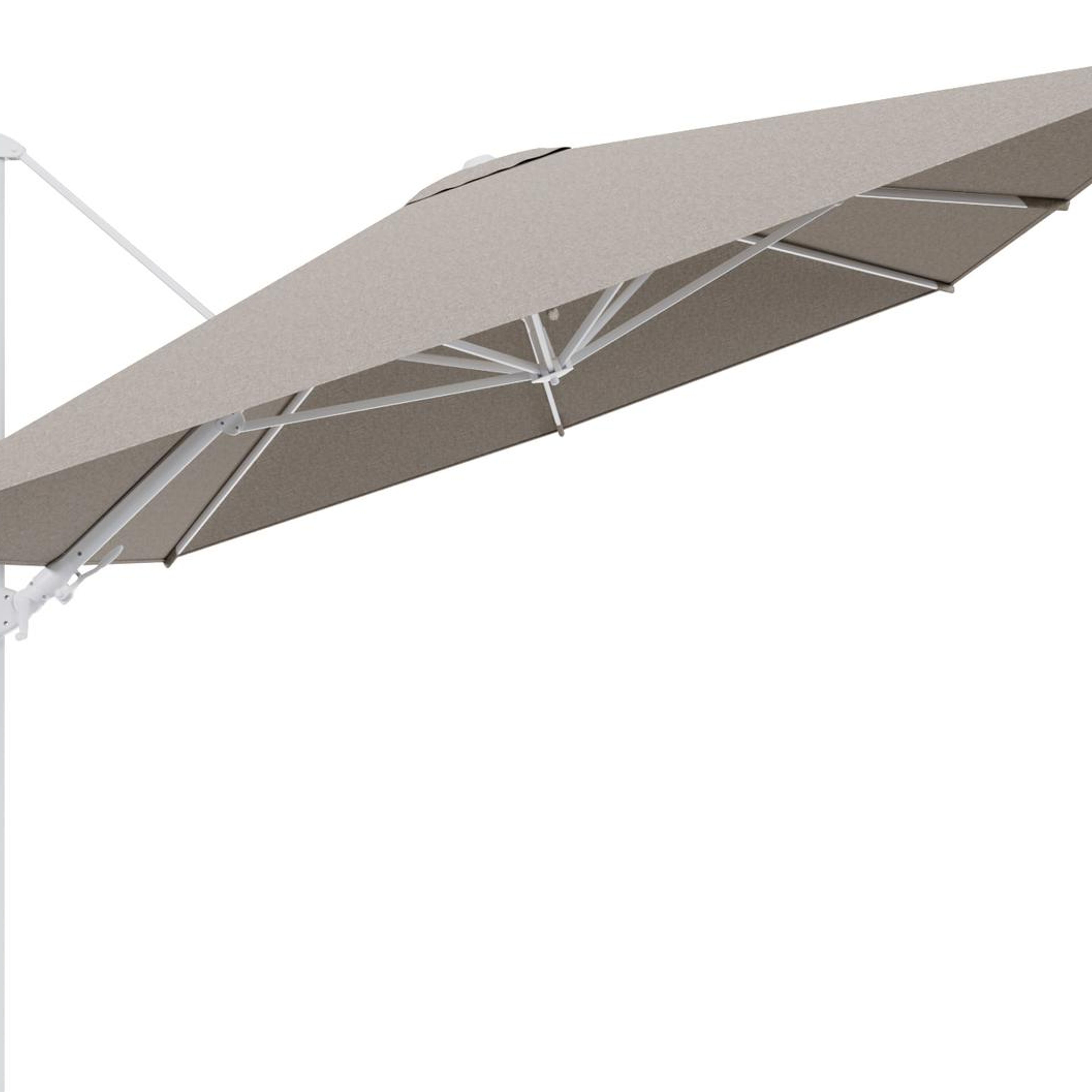 Rufina zweefparasol tiltfunctie in wit aluminium en parasoldoek in All Weather Sunbrella® Luxe Chartres Pewter - L1 400 x L2 300 cm (zonder voet) (zonder voet) | Exterioo tuinmeubelen