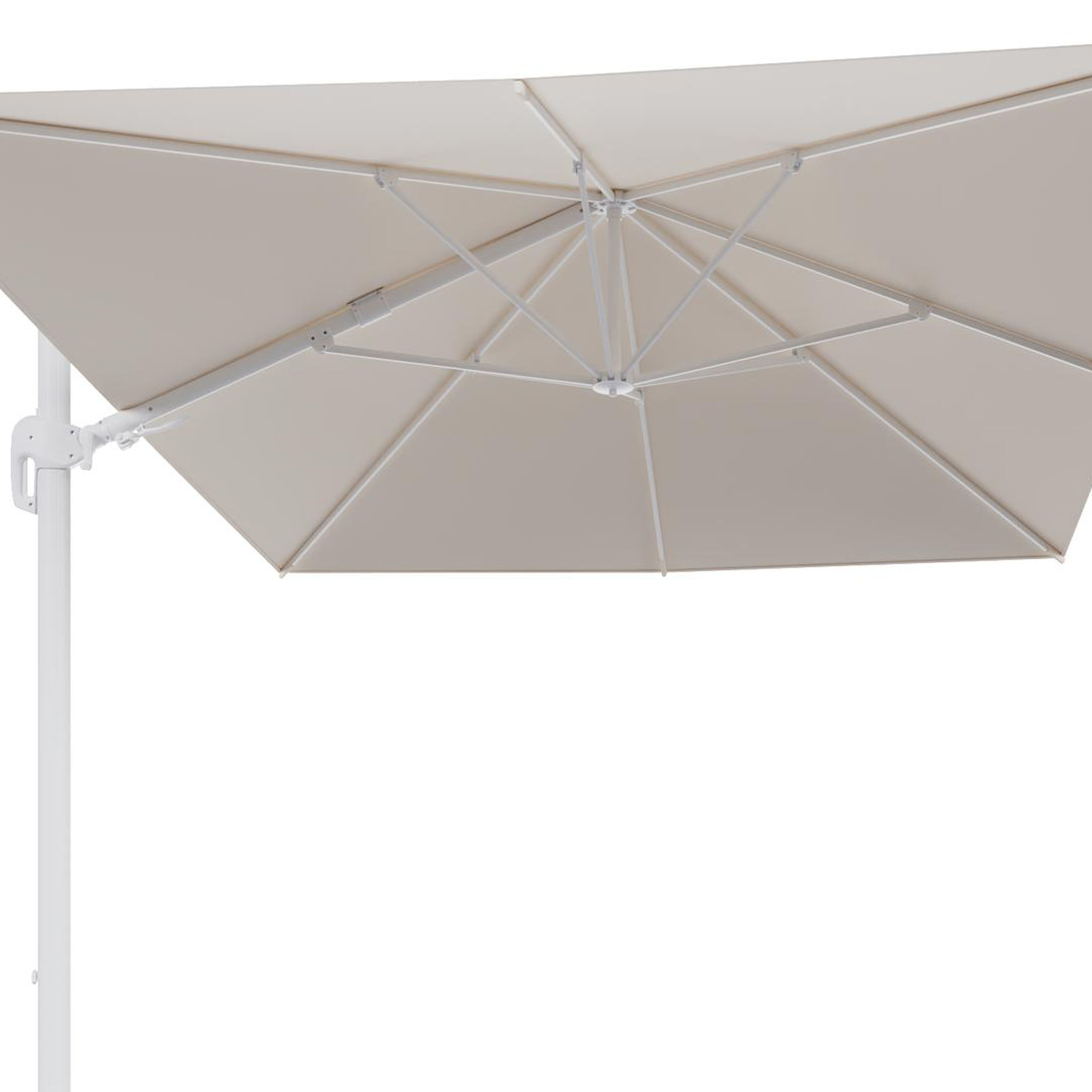 De Rufina zweefparasol is een zeer gebruiksvriendelijke parasol. Het is een zweefparasol waardoor de mast niet in de weg staat. De parasol is makkelijk open te draaien via de hendel. Bovendien is hij ook in hoogte verstelbaar en beschikt de Rufina parasol ook over een tilt-functie. Deze functie biedt de mogelijkheid om de parasol te kantelen, zodat je de stand kunt aanpassen naar de positie van de zon.