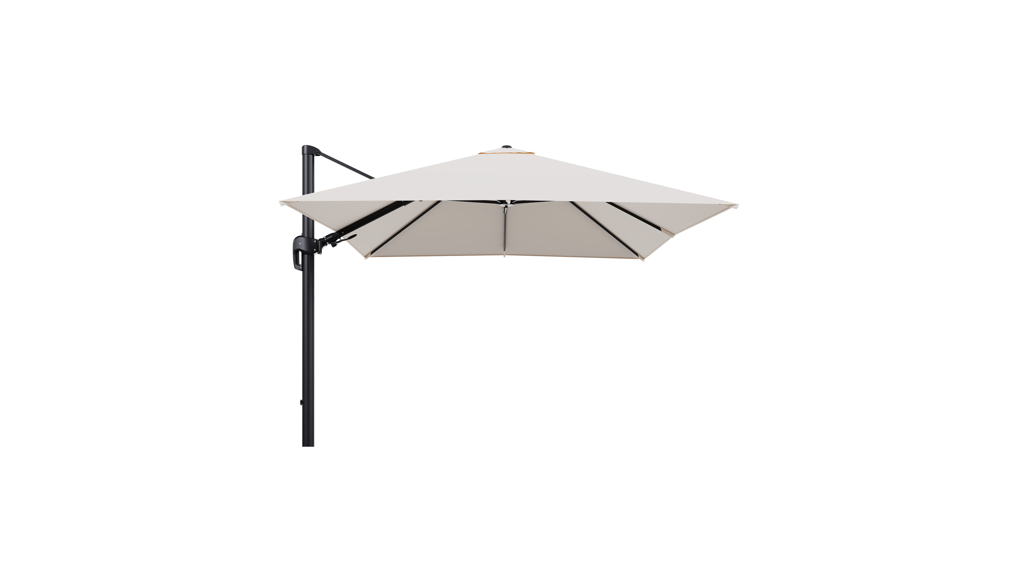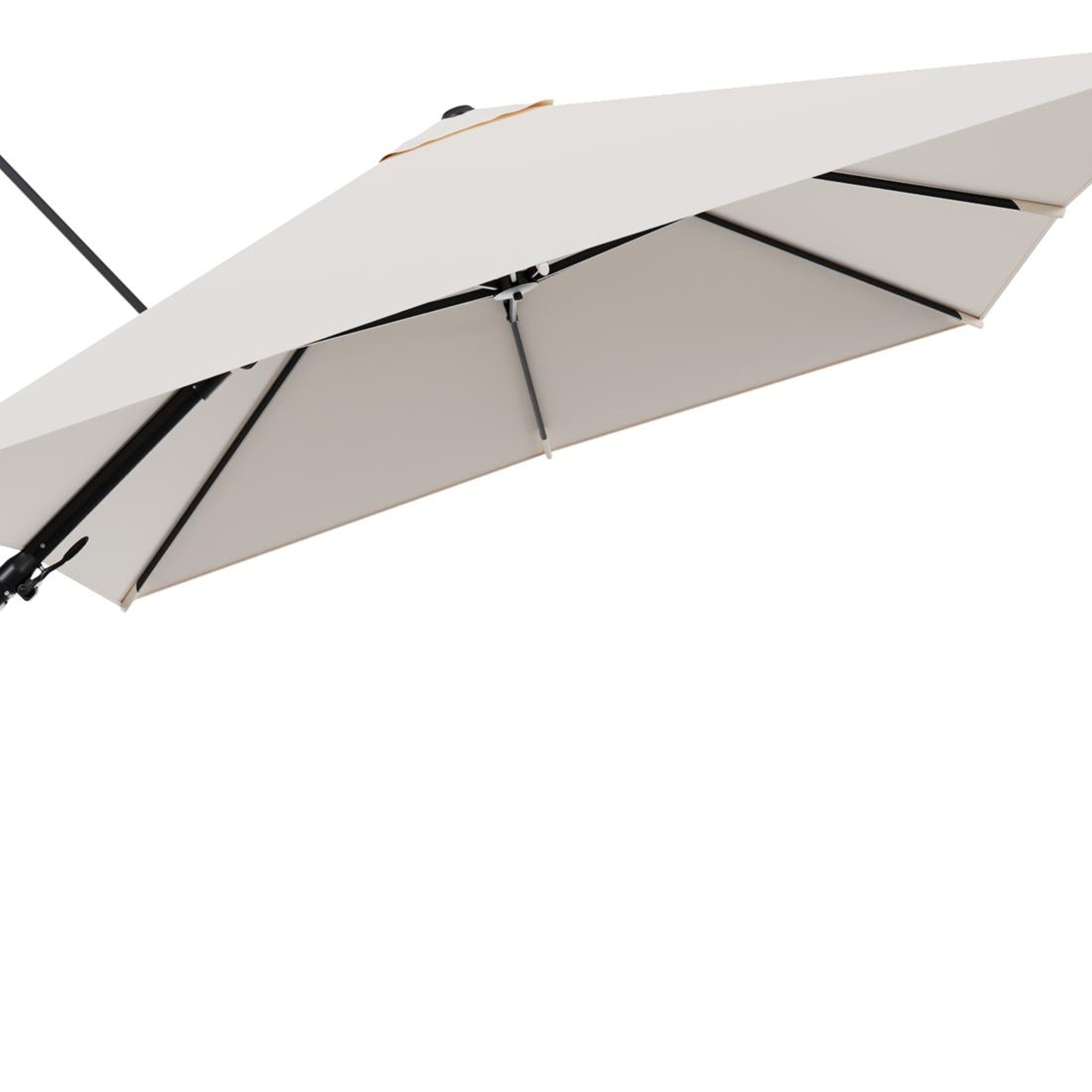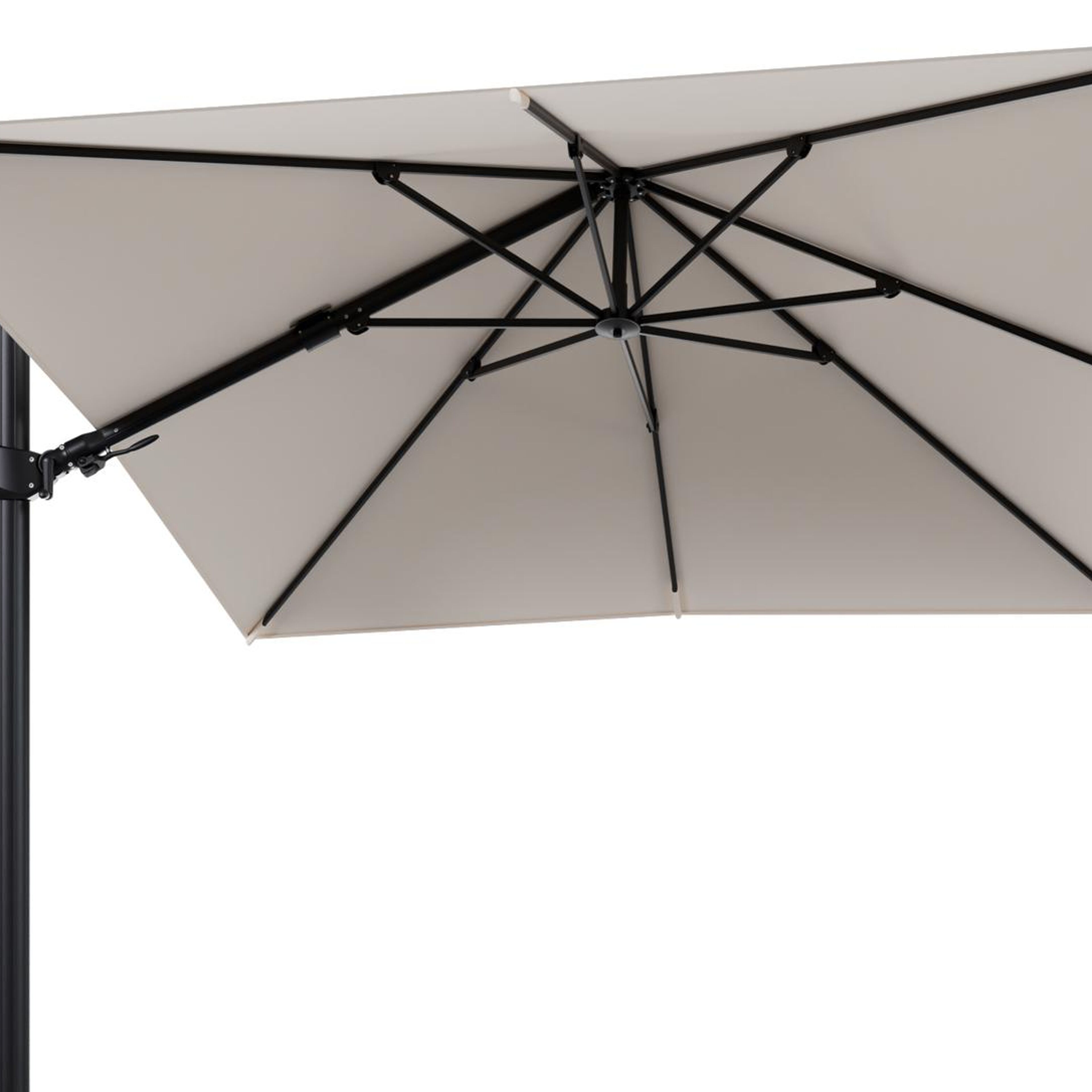 Rufina zweefparasol tiltfunctie in zwart aluminium en parasoldoek in All Weather Sunbrella® Luxe Natte Linen Chalk - L1 300 x L2 300 cm (zonder voet) (zonder voet) | Exterioo tuinmeubelen