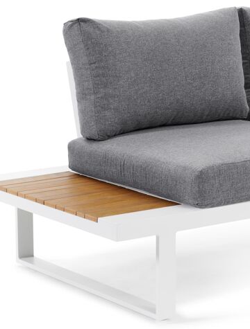 De loungekussens zijn inbegrepen in de loungeset en zijn gemaakt uit polyester: een zachte, synthetische stof. Polyester krimpt of kreukt nauwelijks en is een stevige stof. Je kan het kussen makkelijk wassen aangezien het kussen afritsbaar is. We raden je aan de kussens binnen te nemen bij regen of tijdens de wintermaanden. Een tussenstuk in een lounge biedt veel flexibiliteit in het vergroten van de lounge, spiegelen van de hoek en creëren van een extra 1-zit. Het biedt verschillende mogelijkheden voor het ontwerpen van de opstelling die past bij jouw behoeften en ruimte.