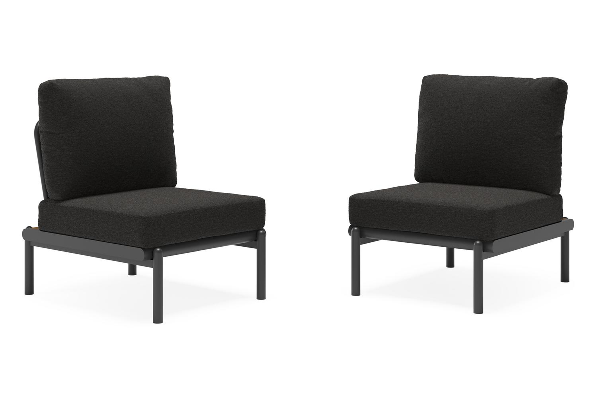 Set van 2 Pulo loungestoelen in zwart aluminium en polywood met zwart Weather+ Softtouch kussen | Exterioo