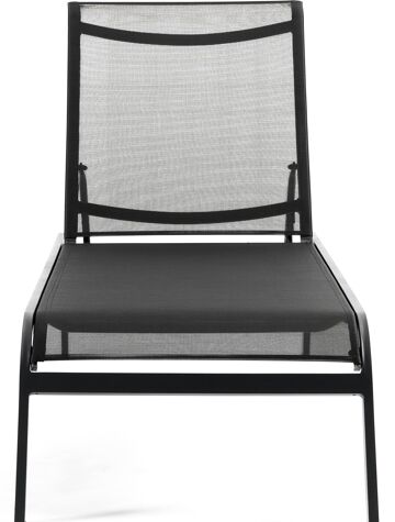 Set van 2 verstelbare acri ligbedden in zwart aluminium en zwart textilene met zwart weather+ softtouch kussen met zwart aluminium bijzettafel | Exterioo