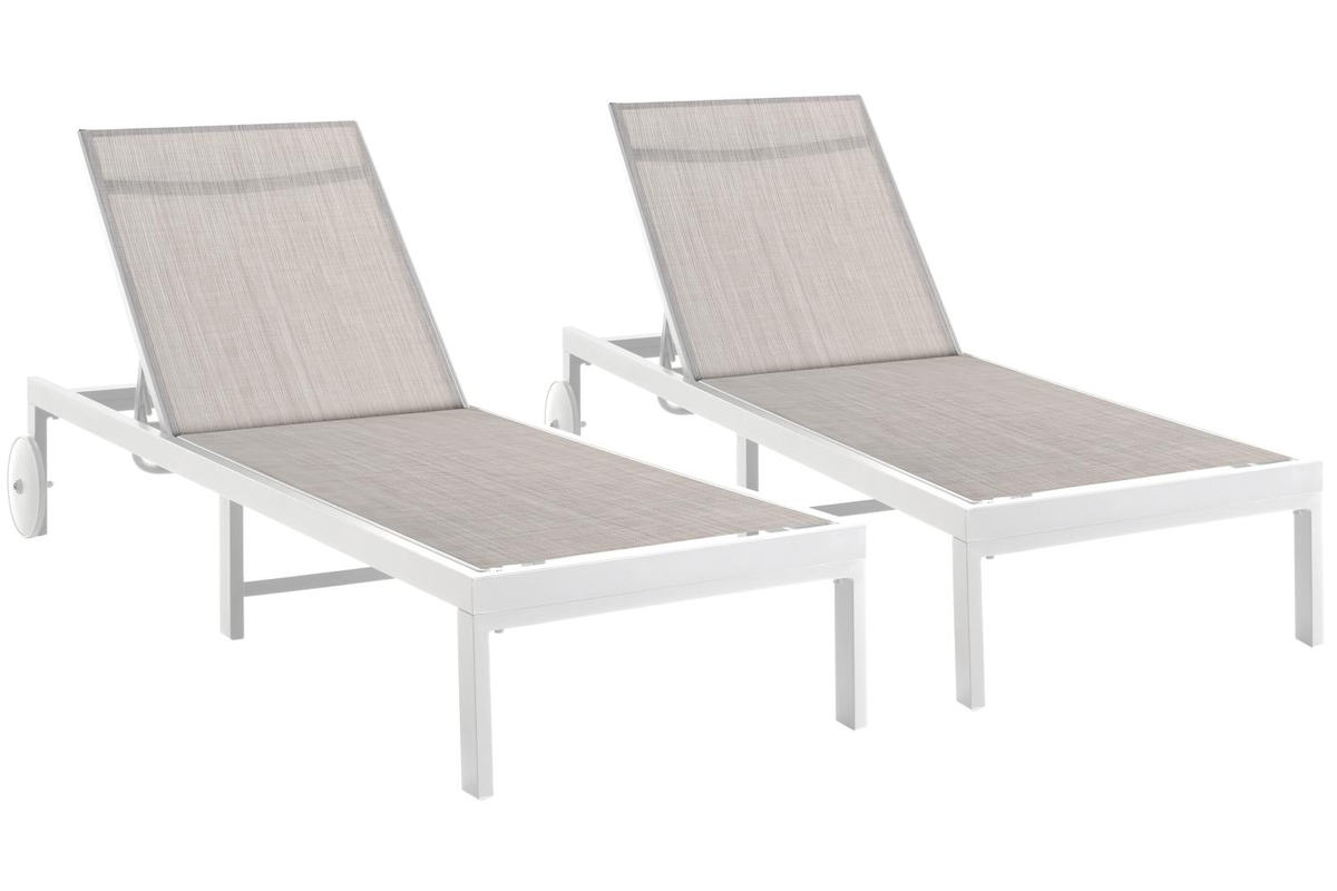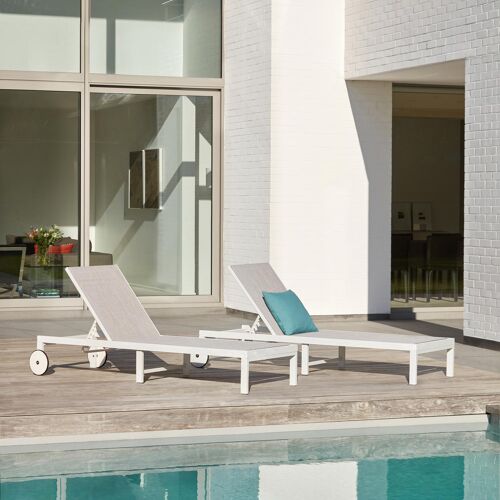 Set van 2 verstelbare Alba ligbedden in wit aluminium en grijs textileen | Exterioo