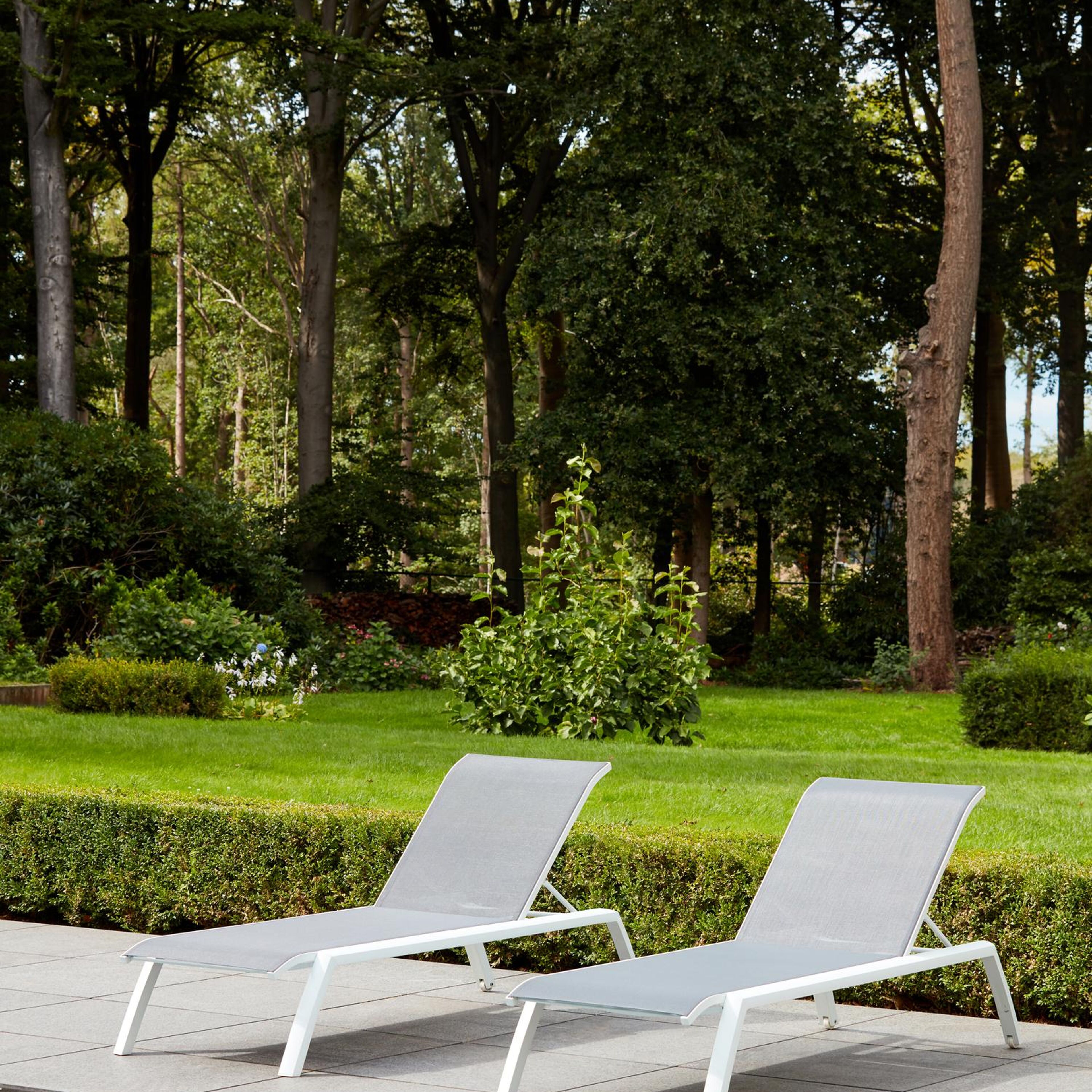 Ervaar onvergetelijke buitenmomenten met de kwalitatieve set van 2 verstelbare Bari ligbedden.