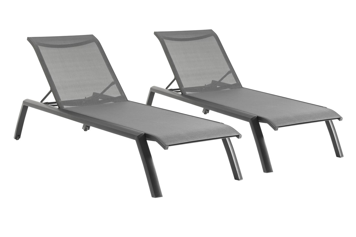 Set van 2 verstelbare Bari ligbedden in zwart aluminium en grijs textileen | Exterioo