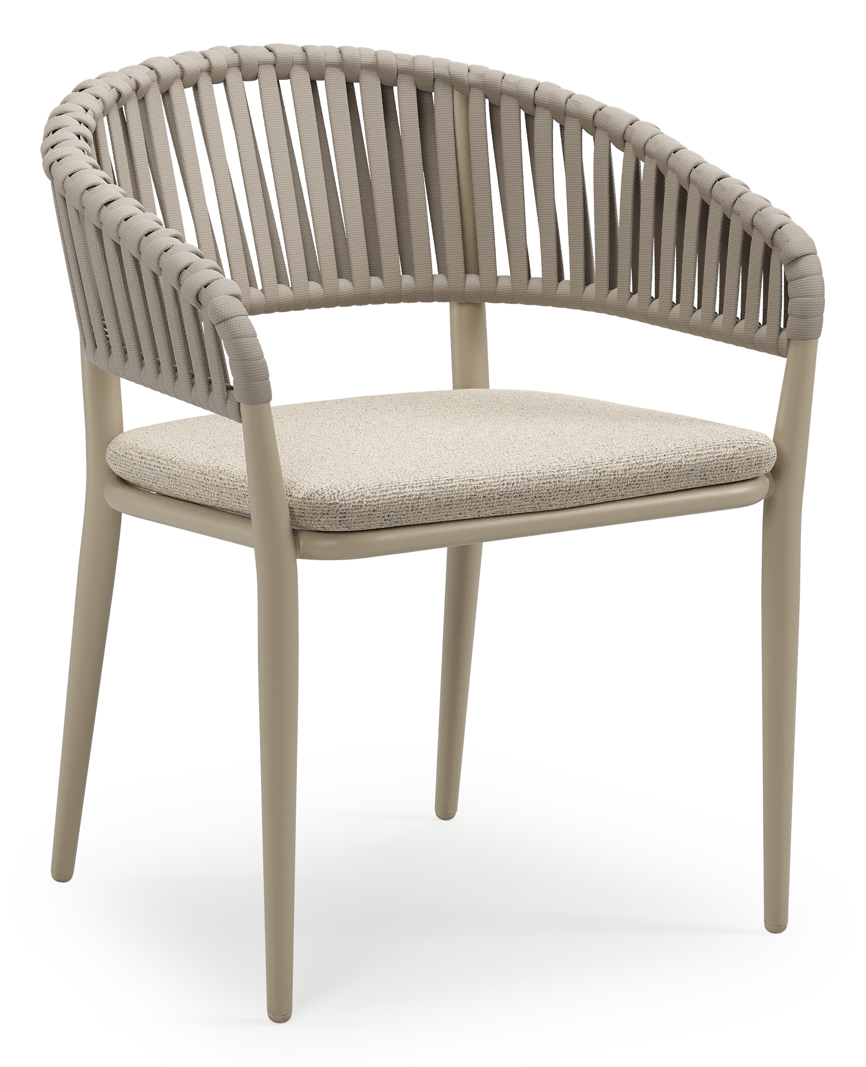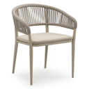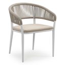 Tolfa stapelbare tuinstoel in beige aluminium en beige verticaal geweven luxe vlakke brede rope met stoelkussen in All Weather Cosytica Marbella Beige | Exterioo tuinmeubelen