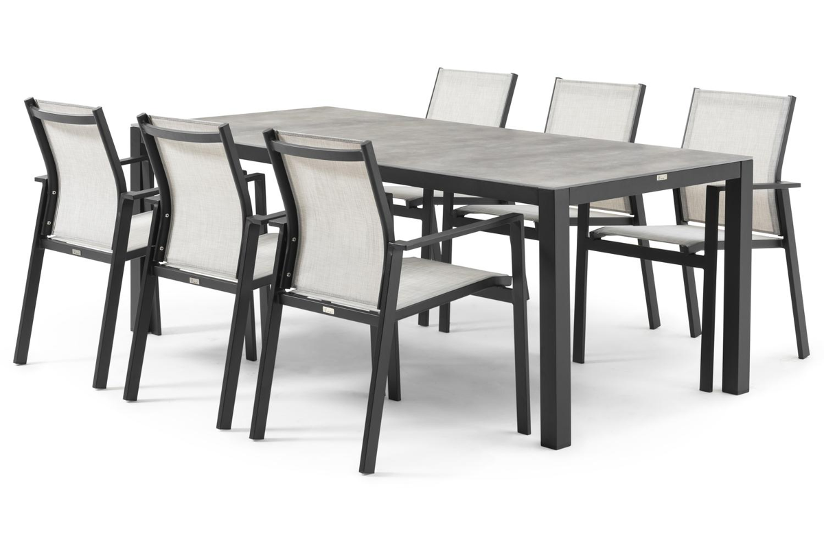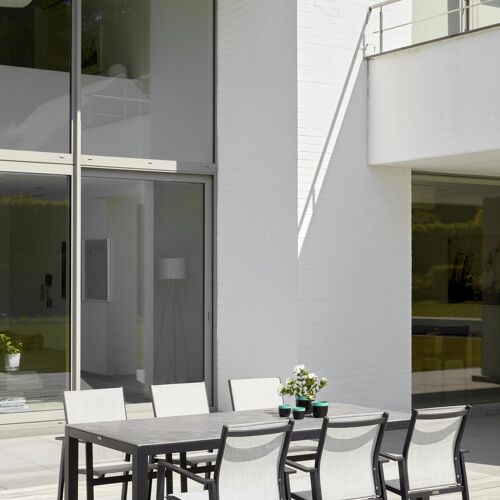 De Bahia stoel heeft een strak en eenvoudig design met uitstekend zitcomfort. Het frame is gemaakt uit roestvrij aluminium. De zitting en rug zijn gemaakt uit stevige textilene, een stijlvol en onderhoudsvriendelijk materiaal. De stoel is stapelbaar en dus makkelijk op te bergen.