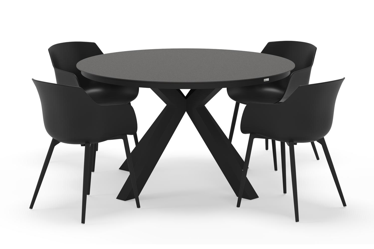 Tora tuinset rond in zwart aluminium en sintered stone zwart met 4 Paco tuinstoelen | Exterioo