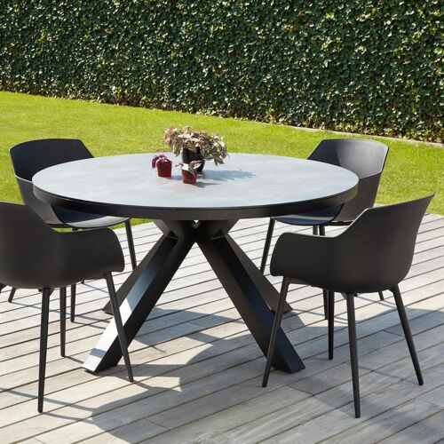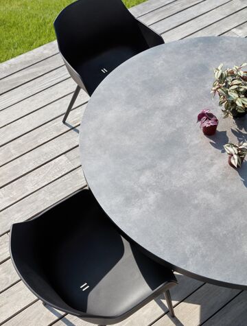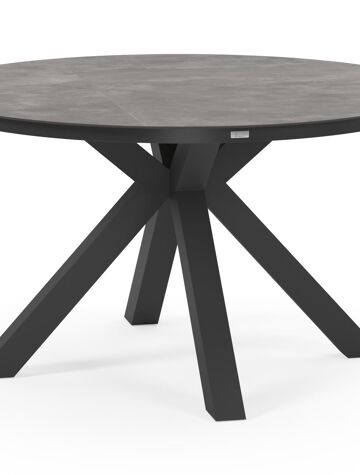Tora tuinset is een collectie met ronde tafels. De kenmerkende kruispoot splitst zich onder het frame uit in vier gespreide poten, wat zorgt voor extra stabiliteit.