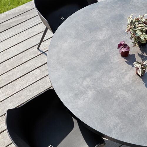 Het frame van de tafel is gemaakt uit roestvrij aluminium, een sterk, maar toch licht materiaal dat makkelijk verplaatsbaar is. Het oppervlak is glad afgewerkt waardoor het geen vuil aantrekt en onderhoudsvriendelijk is. De poedercoating zorgt voor de UV- en weerbestendigheid van je meubel.
