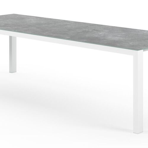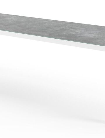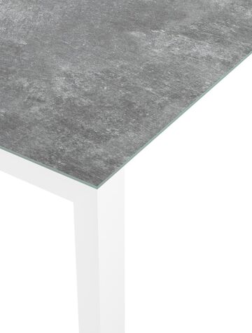 Een tafelblad uit keramisch glas bestaat uit een glazen oppervlak waarop een keramische laag gebakken wordt. Je krijgt zo de look van een volkeramisch blad op het glas. Dankzij de keramische laag is het tafelblad krasbestendig en eenvoudig schoon te maken.