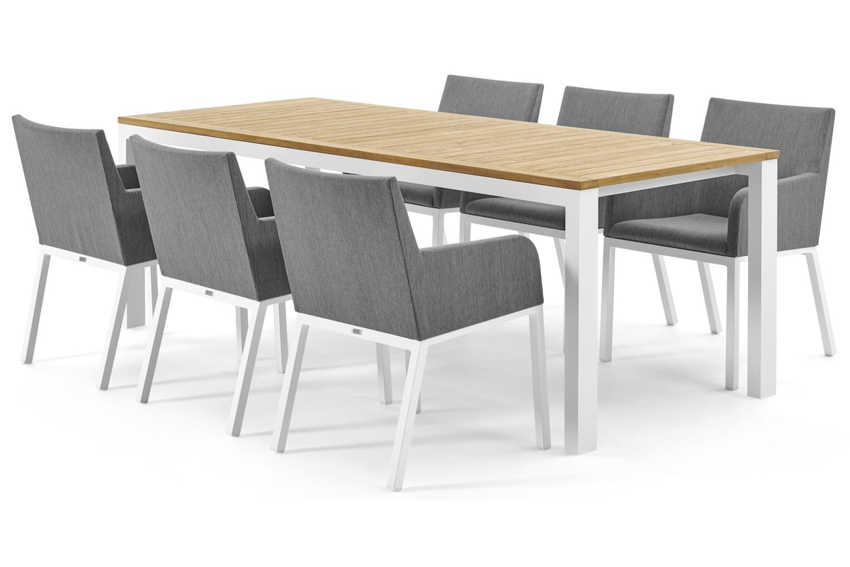 Trente tuinset in wit aluminium en teak naturel tafelblad met 6 Rivo tuinstoelen | Exterioo