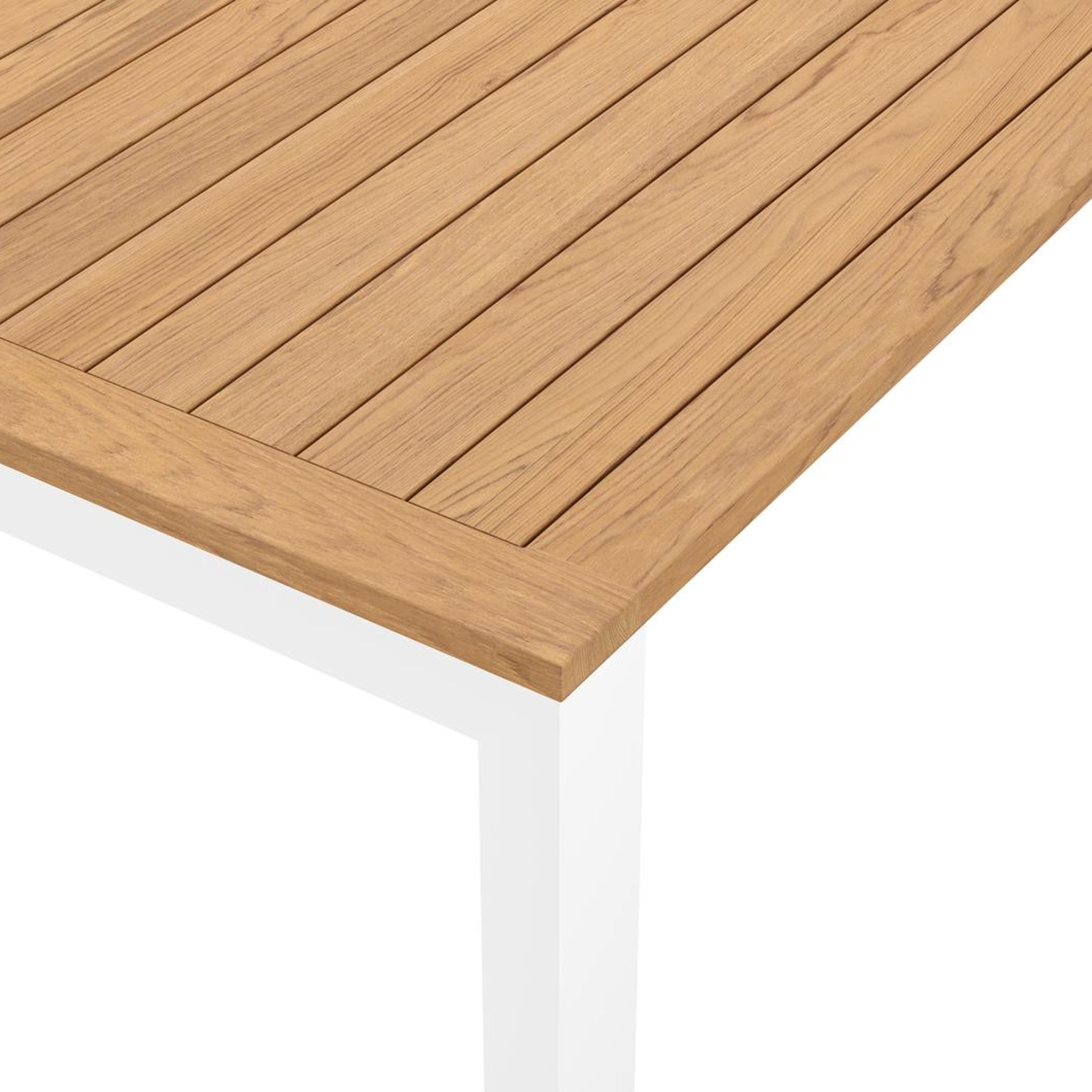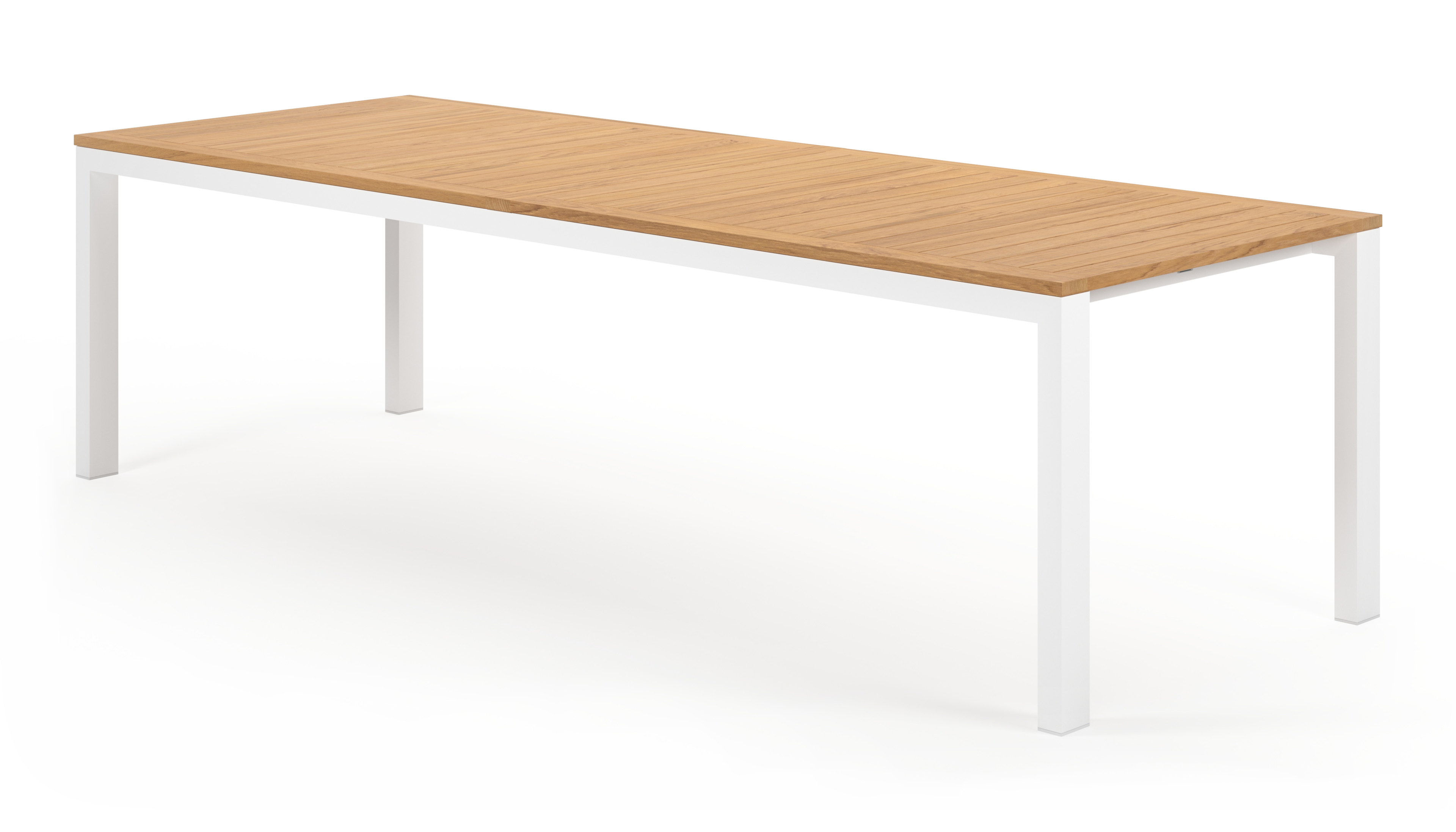 Een tafelblad uit teak staat gelijk aan bijzondere kwaliteit en natuurlijk design. Teak is een kwalitatieve houtsoort gekenmerkt door zijn hardheid. Aangezien hout leeft, kan de structuur of kleur licht anders zijn dan op het beeld weergegeven.