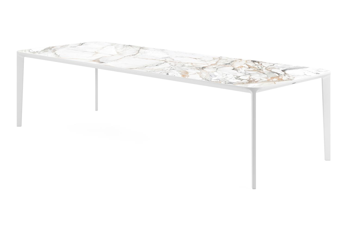 Urbino tuintafel in wit aluminium en volkeramiek calacatta luxe - L 290 x B 110 x H 75 cm | Exterioo