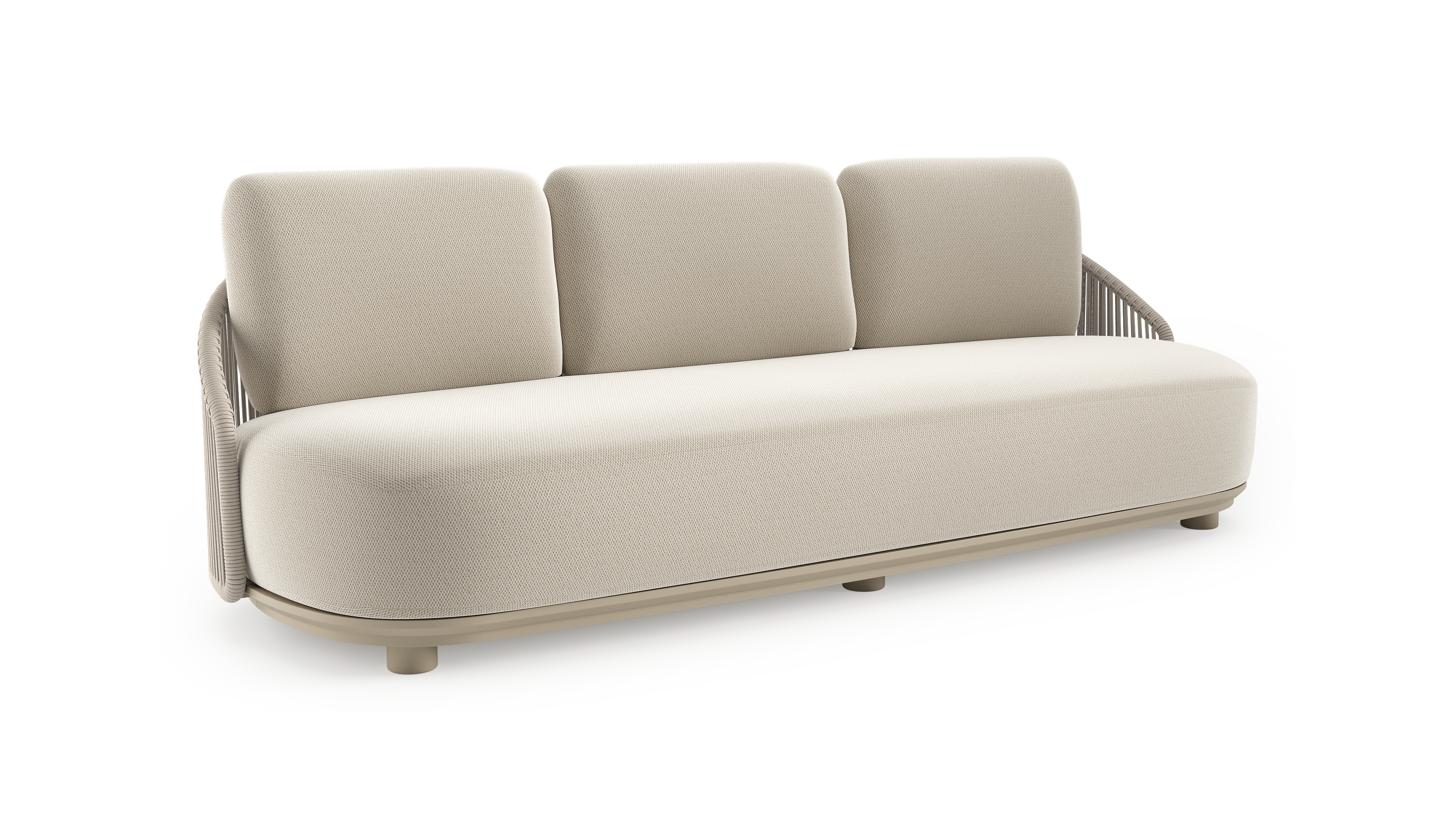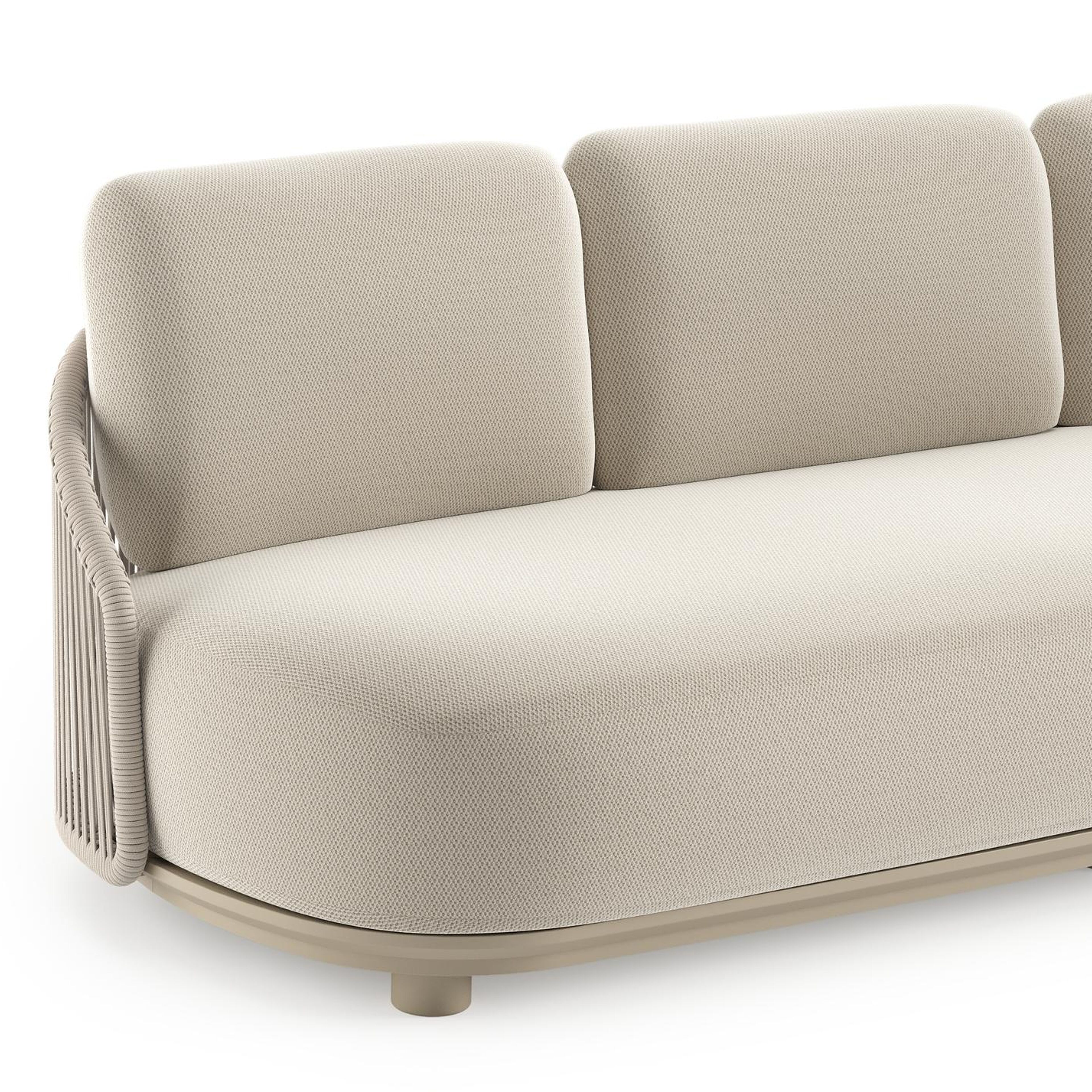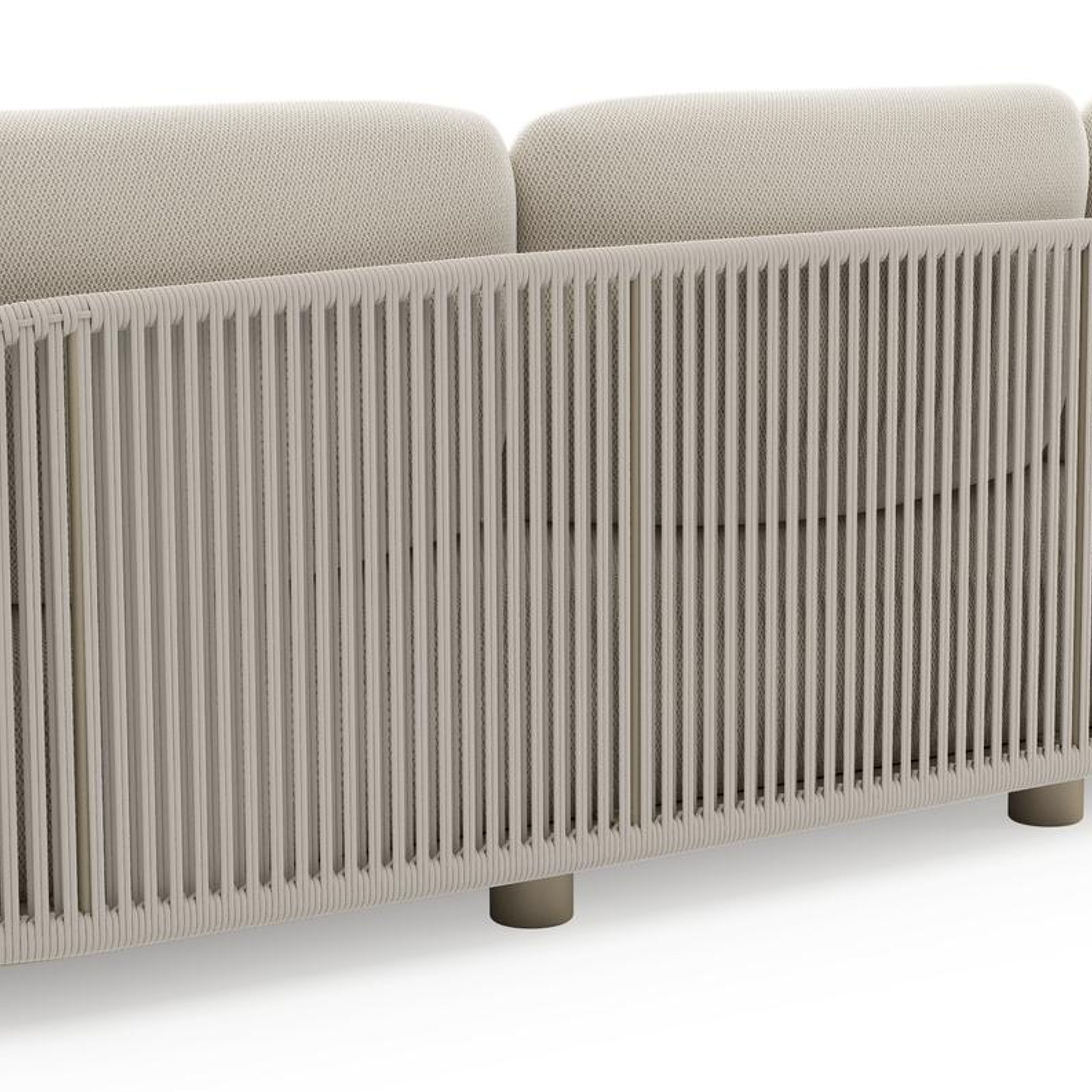 Vadelo loungebank in beige aluminium en beige verticaal geweven ronde rope met lopi marble all weather sunbrella® luxe kussen | Exterioo tuinmeubelen