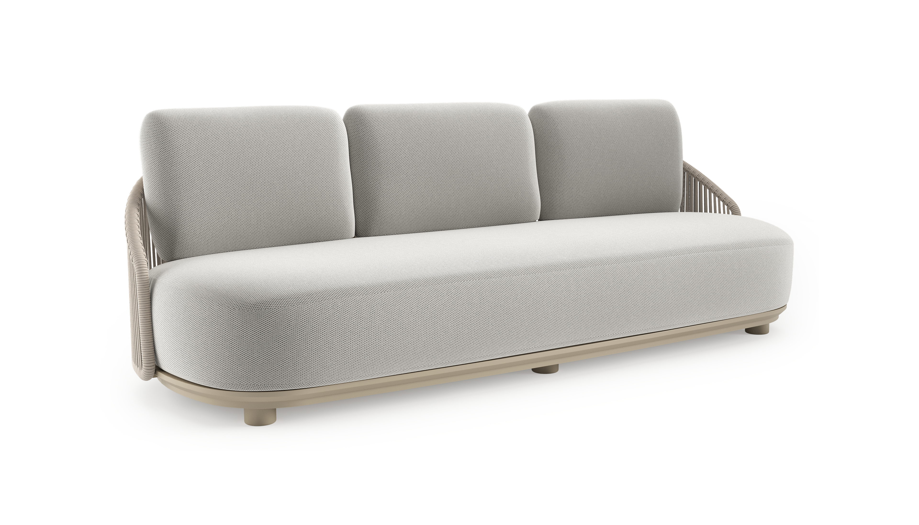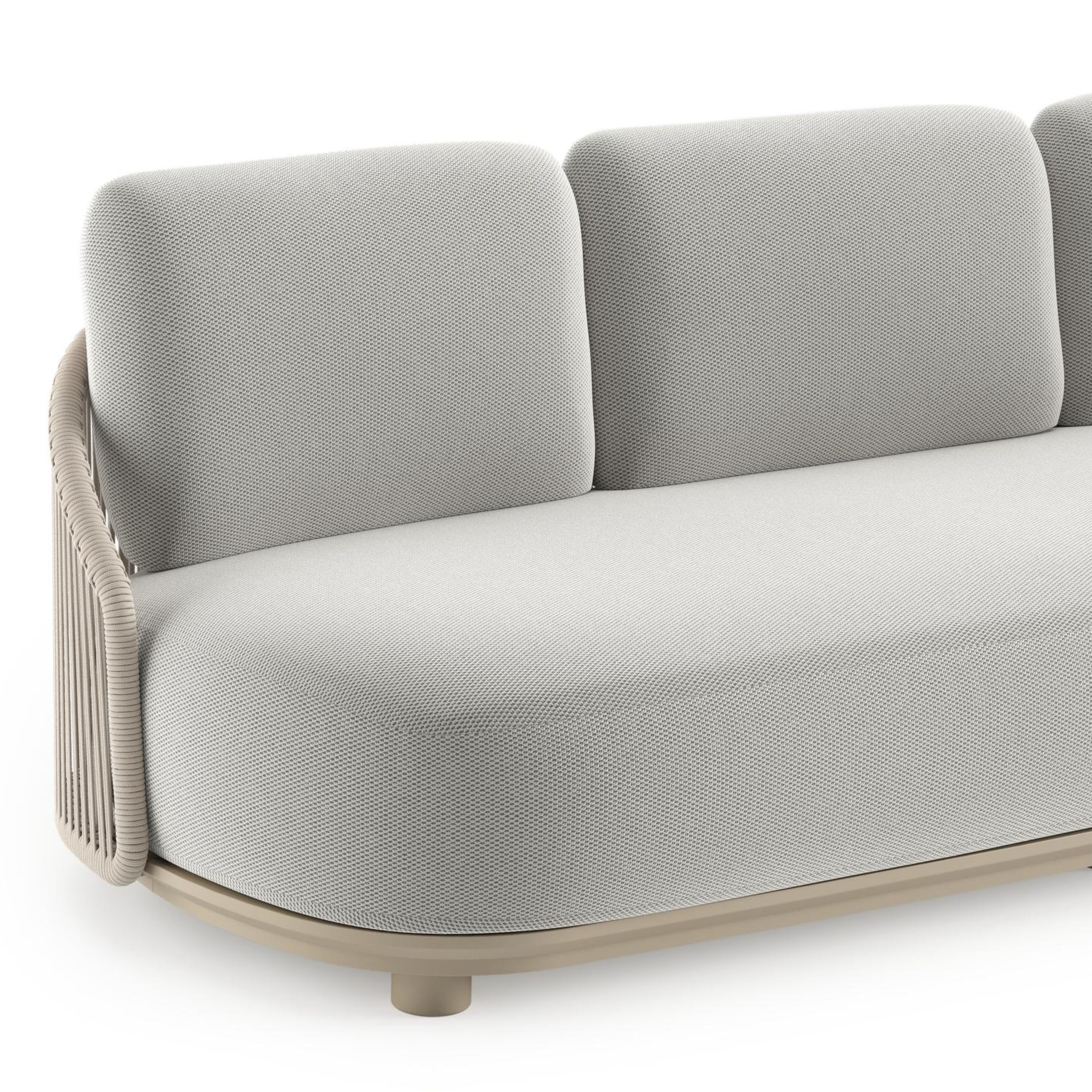 Vadelo loungebank in beige aluminium en beige verticaal geweven ronde rope met lopi ash all weather sunbrella® luxe kussen | Exterioo tuinmeubelen